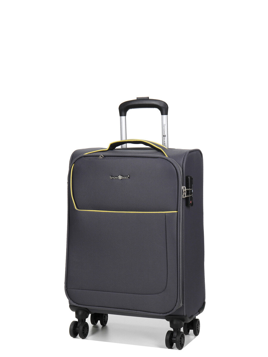 Салонна валіза Snowball Montevideo має регульовану двотрубну візок і 4 здвоєні колеса для комфортного перекочування на 360° і підвищеної стабільності. З боку безпеки він має тримач для етикеток, дуже простий у використанні кодовий замок TSA та перфоровані виступи на блискавці основного відділення. Щоб піднятися по сходах, не пошкодивши руки, його ручка для перенесення має м'які накладки.
