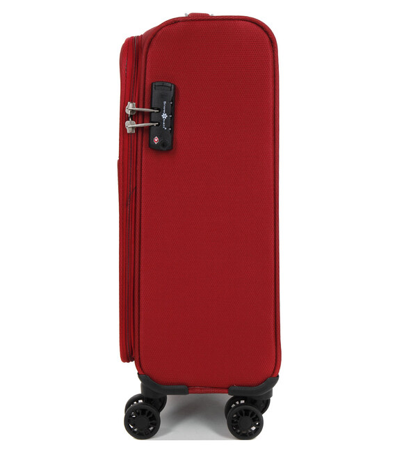 Салонна валіза Snowball Montevideo має регульовану двотрубну візок і 4 здвоєні колеса для комфортного перекочування на 360° і підвищеної стабільності. З боку безпеки він має тримач для етикеток, дуже простий у використанні кодовий замок TSA та перфоровані виступи на блискавці основного відділення. Щоб піднятися по сходах, не пошкодивши руки, його ручка для перенесення має м'які накладки.