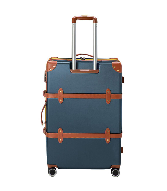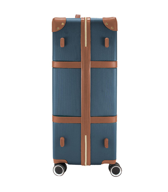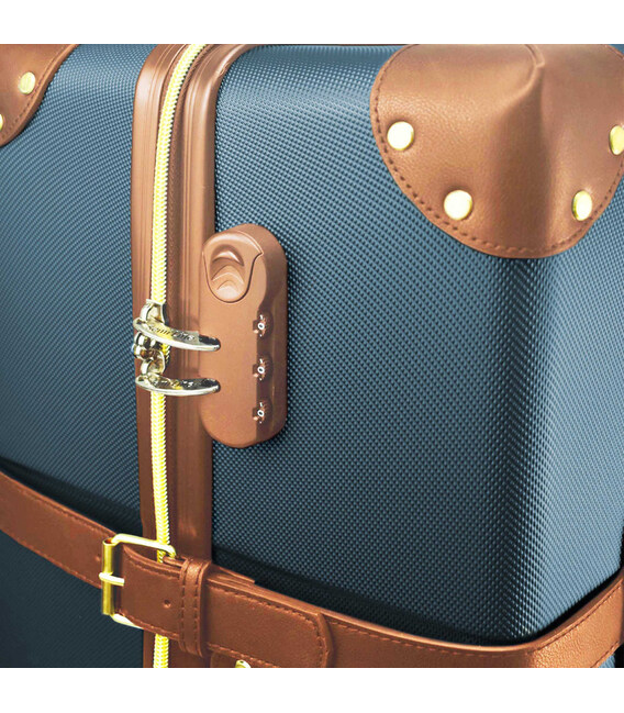 Вінтажна валіза Semi Line T5672-4 має декоративні накладки на кутах та ремені з екошкіри, але вони також виконують і практичне завдання - захист кутів валізи при ударах, та додаткова фіксація валізи закритому стані. Верхня і бічна ручки мають металеві вставки для більшої міцності. З цією ж метою кожне з коліс закріплено чтирма гвинтами, як і пластиковий верх телескопічної ручки.