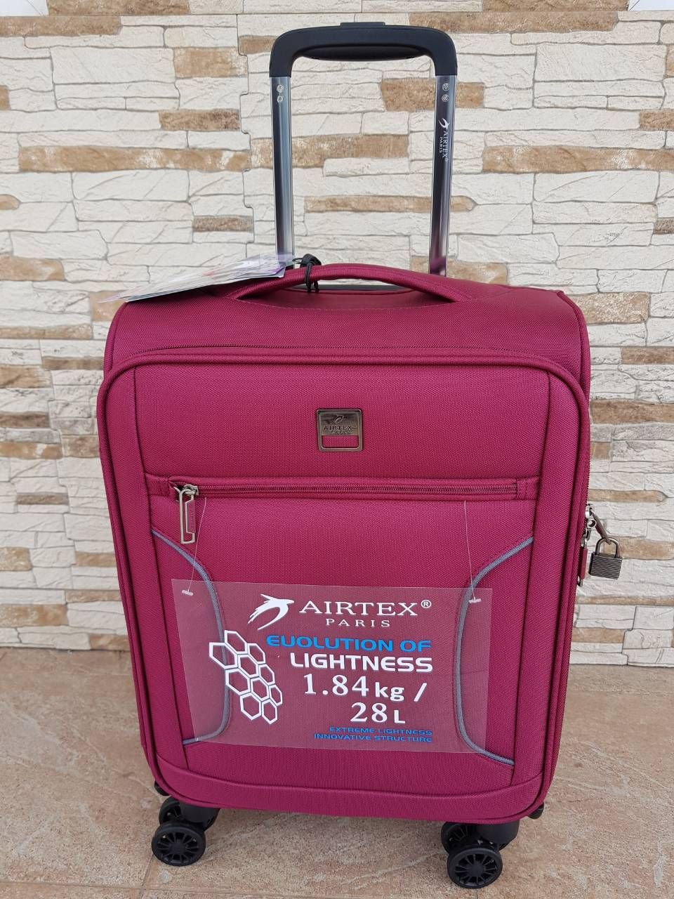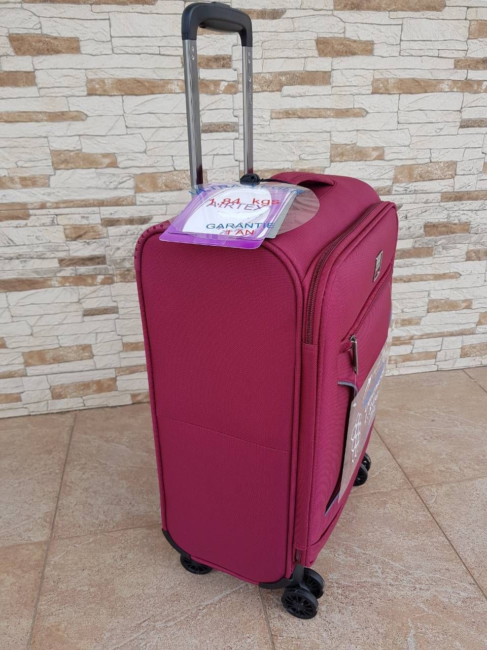 Дана валіза виготовлена з спеціально розроблених легких компонентів, завдяки яким зменшується вага валізи, що є вирішенням проблеми обмеження ваги багажу під час авіаперельотів. Всі основні елементи валізи виготовлені з легких матеріалів і міцної тканини. Ця модель відрізняється високою маневреністю і легкістю в управлінні, завдяки чотириколісною системі (чотири колеса з міцного і безшумного матеріалу, що обертаються на 360 градусів). В якості тканини вибрали нейлон, який має високу щільність (500D) та володіє водовідштовхувальними властивостями. Крім того, цей матеріал легко очищається від бруду і не піддається механічній деформації. Каркас цієї валізи складається з гнучких поліпропіленових пластин і ущільненого дна, за рахунок чого, не тільки прекрасно тримає свою форму, але і дозволяють зберігати в цілості всі предмети знаходяться в середині. Одяг може бути акуратно закріплений на фіксуючих ременях. Також в середині валізи розміщений великий бічний кишеня-сітка, ззовні, для невеликих речей розташована кишеня в який зручно складати все, що необхідно в дорозі. У маленькому розмірі немає збільшення. Численні тести проведені у Франції, доводять, що всі матеріали з яких виготовлені основні компоненти валізи є функціональні і придатні до експлуатації.