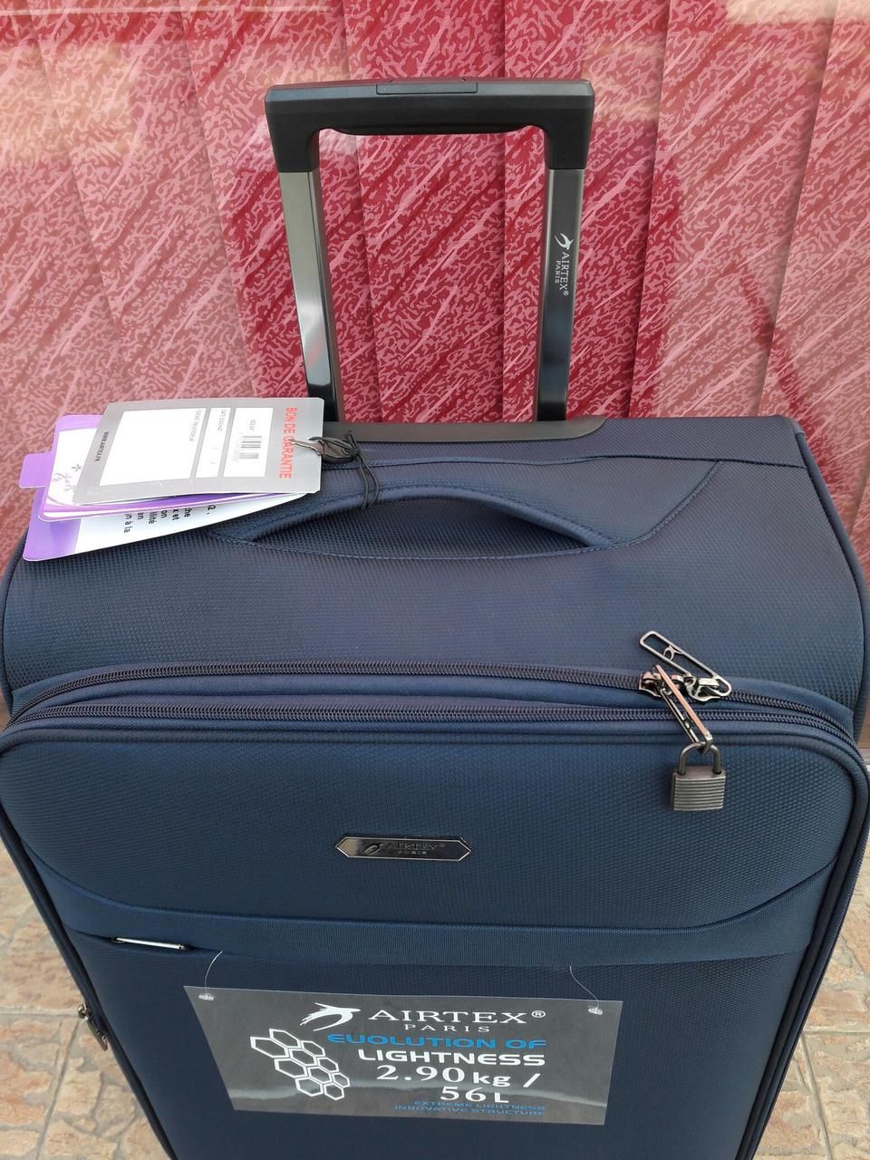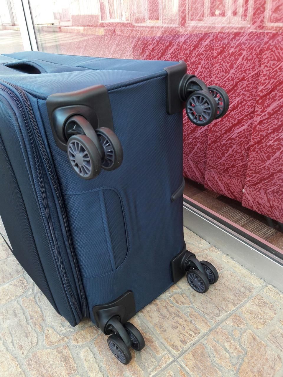 Дана валіза виготовлена з спеціально розроблених легких компонентів, завдяки яким зменшується вага валізи, що є вирішенням проблеми обмеження ваги багажу під час авіаперельотів. Всі основні елементи валізи виготовлені з легких матеріалів і міцної тканини. Ця модель відрізняється високою маневреністю і легкістю в управлінні, завдяки чотириколісною системі (чотири колеса з міцного і безшумного матеріалу, що обертаються на 360 градусів). В якості тканини вибрали нейлон, який має високу щільність (600D) та володіє водовідштовхувальними властивостями. Крім того, цей матеріал легко очищається від бруду і не піддається механічній деформації. Каркас цієї валізи складається з гнучких поліпропіленових пластин і ущільненого дна, за рахунок чого, не тільки прекрасно тримає свою форму, але і дозволяють зберігати в цілості всі предмети знаходяться в середині. Одяг може бути акуратно закріплений на фіксуючих ременях. Також в середині валізи розміщений великий бічний кишеня-сітка, ззовні, для невеликих речей розташована кишеня в який зручно складати все, що необхідно в дорозі. У маленькому розмірі немає збільшення. Численні тести проведені у Франції, доводять, що всі матеріали з яких виготовлені основні компоненти валізи є функціональні і придатні до експлуатації.