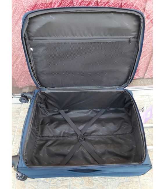 Дана валіза виготовлена з спеціально розроблених легких компонентів, завдяки яким зменшується вага валізи, що є вирішенням проблеми обмеження ваги багажу під час авіаперельотів. Всі основні елементи валізи виготовлені з легких матеріалів і міцної тканини. Ця модель відрізняється високою маневреністю і легкістю в управлінні, завдяки чотириколісною системі (чотири колеса з міцного і безшумного матеріалу, що обертаються на 360 градусів). В якості тканини вибрали нейлон, який має високу щільність (600D) та володіє водовідштовхувальними властивостями. Крім того, цей матеріал легко очищається від бруду і не піддається механічній деформації. Каркас цієї валізи складається з гнучких поліпропіленових пластин і ущільненого дна, за рахунок чого, не тільки прекрасно тримає свою форму, але і дозволяють зберігати в цілості всі предмети знаходяться в середині. Одяг може бути акуратно закріплений на фіксуючих ременях. Також в середині валізи розміщений великий бічний кишеня-сітка, ззовні, для невеликих речей розташована кишеня в який зручно складати все, що необхідно в дорозі. У маленькому розмірі немає збільшення. Численні тести проведені у Франції, доводять, що всі матеріали з яких виготовлені основні компоненти валізи є функціональні і придатні до експлуатації.