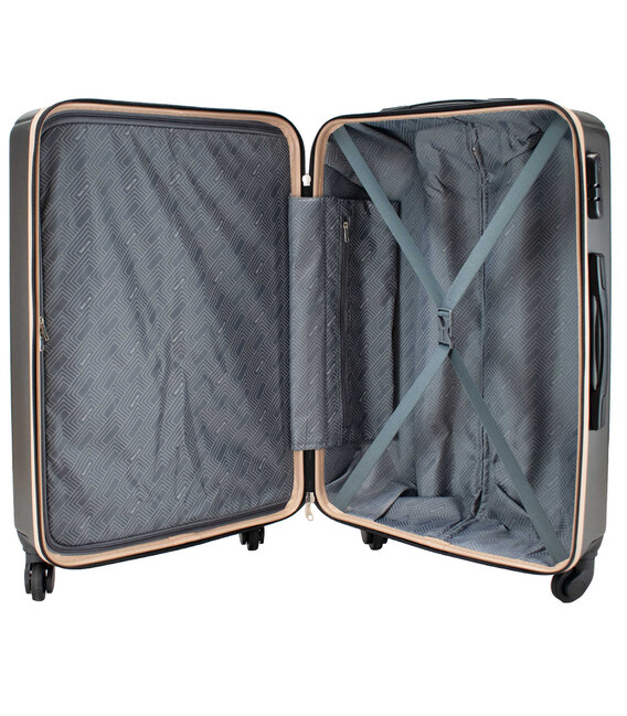 - Валіза має текстильну перегородку на блискавці, яка поділяє внутрішній простір на два основні відділення.