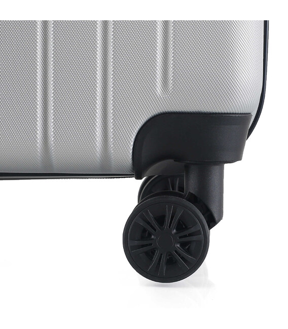 - Повноповоротні колеса - дана модель оснащена чотирма обертовими на 360 ° здвоєними колесами великого діаметру. Здвоєні колеса забезпечують кращий розподіл ваги та стійкість валізи, відмінне зчеплення, маневреність та мають більшу зносостійкість. Колеса кріпляться на 4 гвинти зсередини, що забезпечує високу стійкість при ударному навантаженні з будь-якого боку і дозволяє їх замінити у разі зносу.