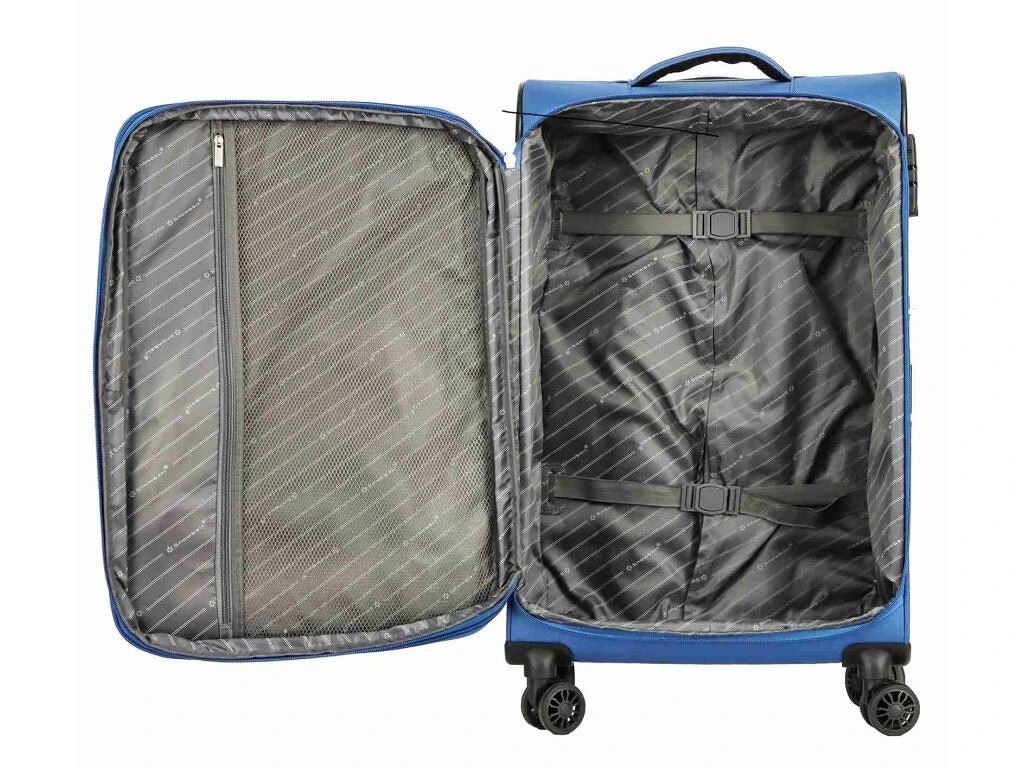 Просторий внутрішній відсік: Середній розмір валізи дозволяє комфортно розмістити усі необхідні речі для тижневої подорожі чи відрядження. Внутрішні ремені фіксації допомагають організувати багаж та запобігають переміщенню речей під час транспортування. Додатковий кишеньковий відсік дозволяє зручно зберігати дрібні речі чи документи.
