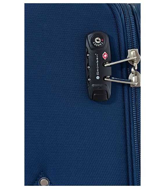 Вбудований комбінований замок TSA. 4 зручні і якісні колісні пари. Висувна ручка для поручня з замком. Логотип Snowball в передній частині валізи. Всередині є захисні ремені, велика кишеня на блискавці.