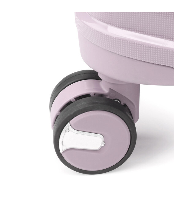 - Подвійні колеса - дана модель оснащена чотирма обертовими на 360 ° здвоєними колесами. Здвоєні колеса забезпечують кращий розподіл ваги та стійкість валізи, відмінне зчеплення, маневреність та мають більшу зносостійкість. Колеса кріпляться гвинтами зсередини, що дозволяє їх замінити у разі зносу.