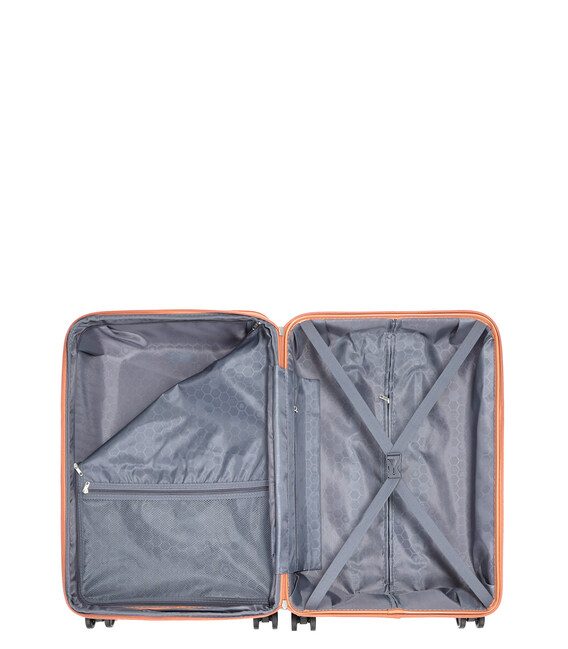 Розширювана валіза Worldline Kos має 2 добре обставлених відділення, що дозволяє організувати ваші речі найкращим чином. Таким чином, у правому відділенні можна розмістити білизну, утримувану еластичними стрічками. У лівому відділенні є перегородка на блискавці, щоб ви могли спокійно зберігати великі предмети, такі як туалетна сумка, пара взуття, пляжне спорядження тощо. Сітчаста кишеня, розташована на м'якій стінці, забезпечує простір для зберігання модних аксесуарів або нижньої білизни. У другій центральній кишені можна помістити беруші, маску для сну та кілька дрібних предметів.