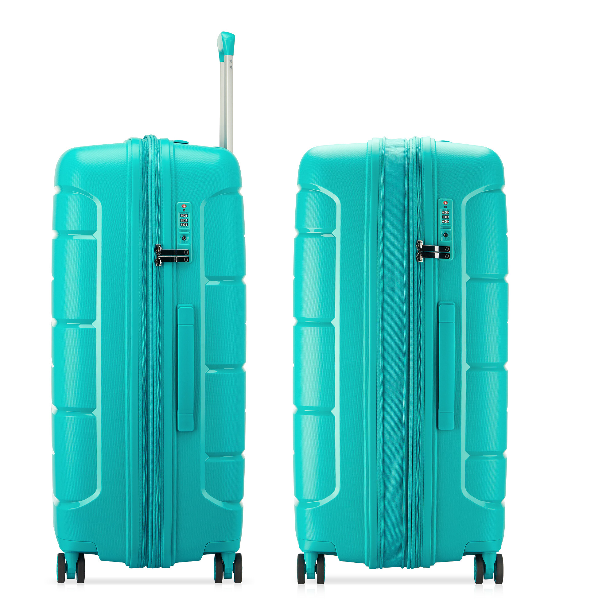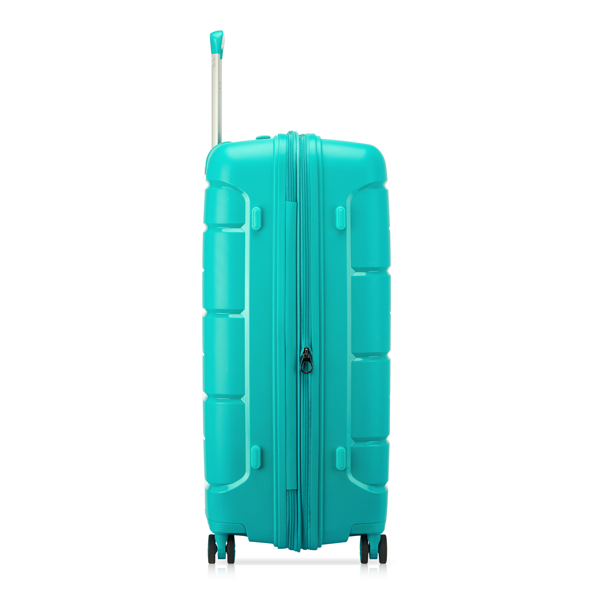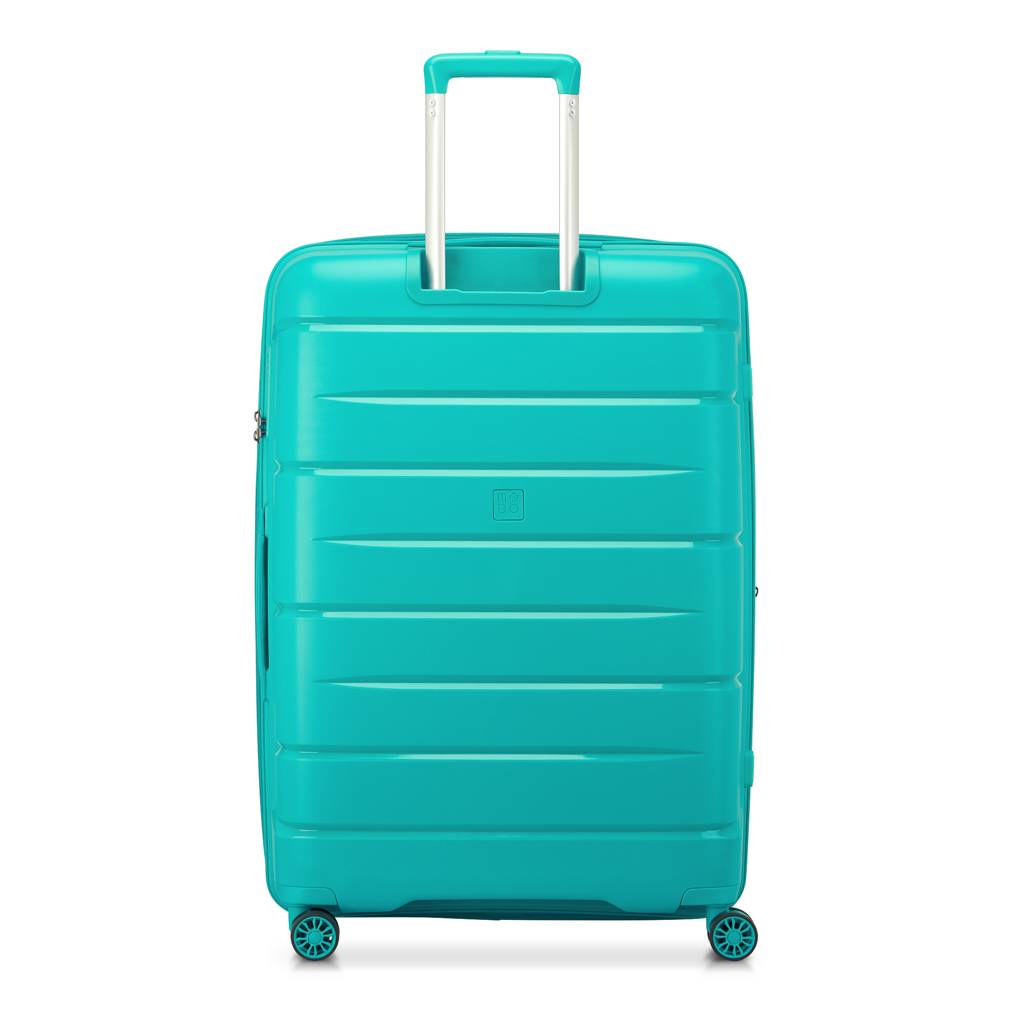 Валіза виготовлена з міцного 100% поліпропілену, має відмінну внутрішню організацію. Виріб оснащений 4 безшумними маневреними колесами, вбудованим кодовим замком з системою TSA, телескопічною ручкою, на верхній і бічній панелі розташовані додаткові ручки для зручності перенесення. На задній панелі передбачена висувна адресна бирка.