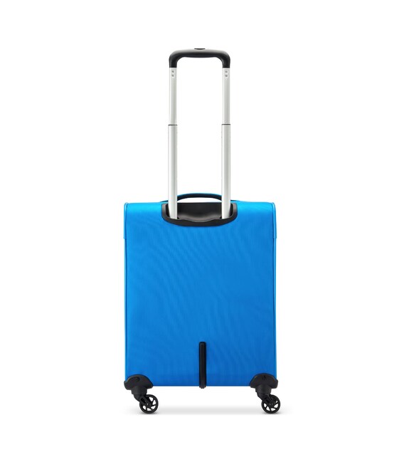 Валіза оснащена чотирма міцними колесами. На верхній панелі розташована текстильна підйомна ручка, для зручності переміщення є телескопічна ручка. На фронтальній поверхні є глибока кишеня, що закривається на блискавку, а також невелика кишеня на блискавці з двома бігунками і стримуючими кутами.