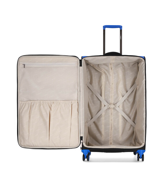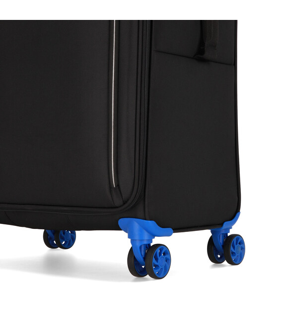 Для безпеки багажу валіза обладнана вбудованим кодовим замком. Завдяки колесам, що обертаються на 360 градусів, валіза плавно рухається в будь-якому напрямку, а зручна телескопічна ручка та додаткова ручка збоку полегшують транспортування.