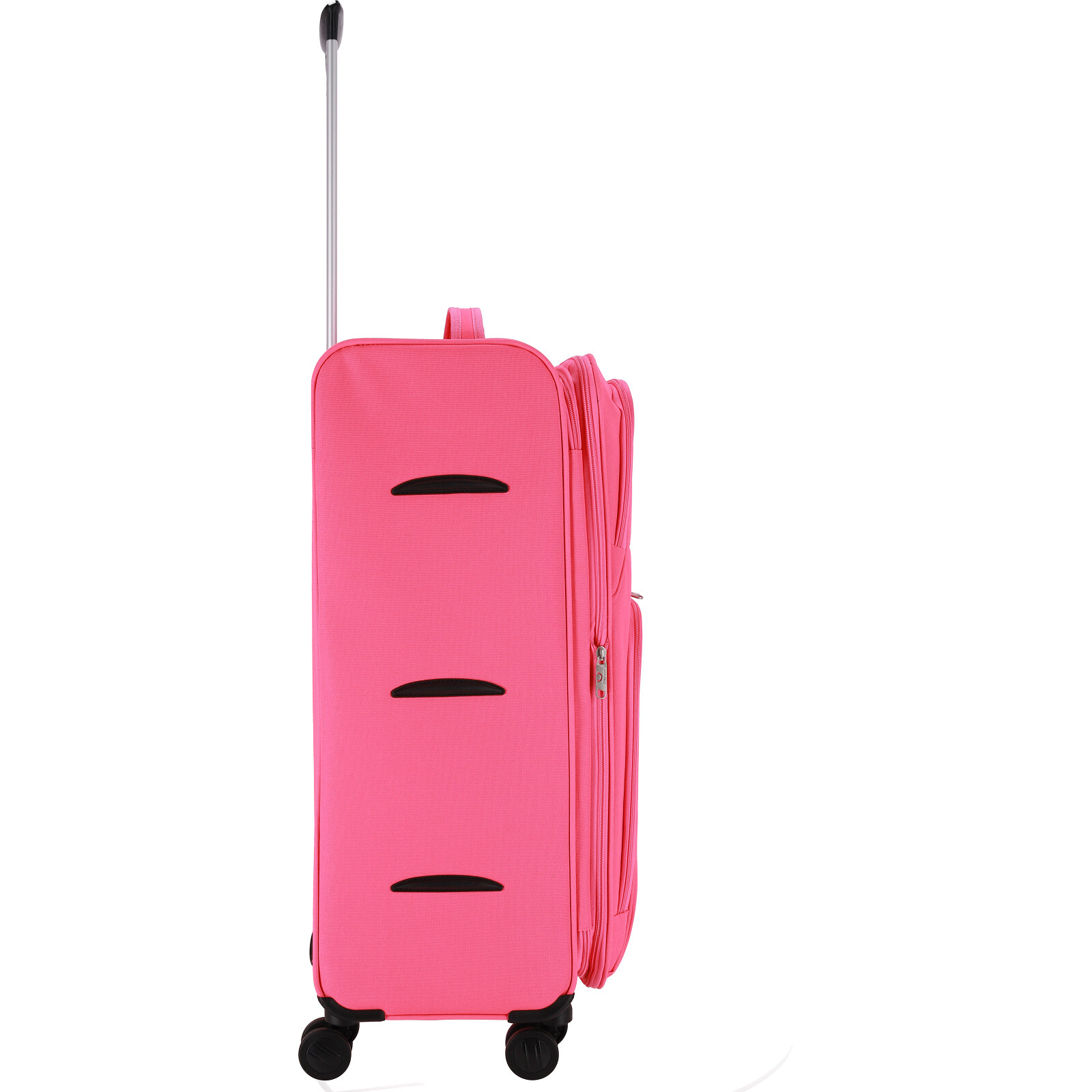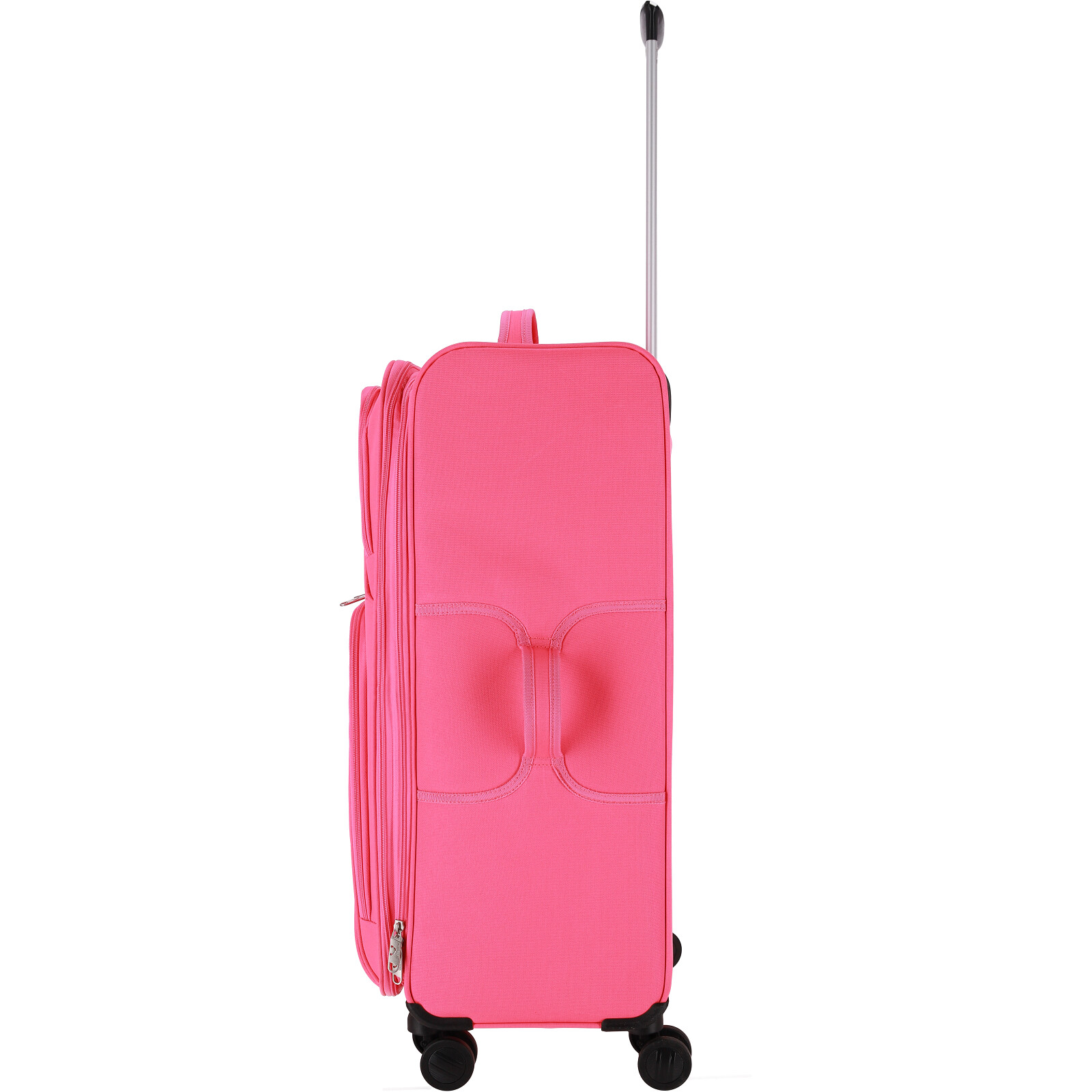 Чотири колеса, що обертаються на 360°, забезпечують плавне пересування будь-якими поверхнями. А зручна ручка допомагає легко керувати валізою навіть на ходу.