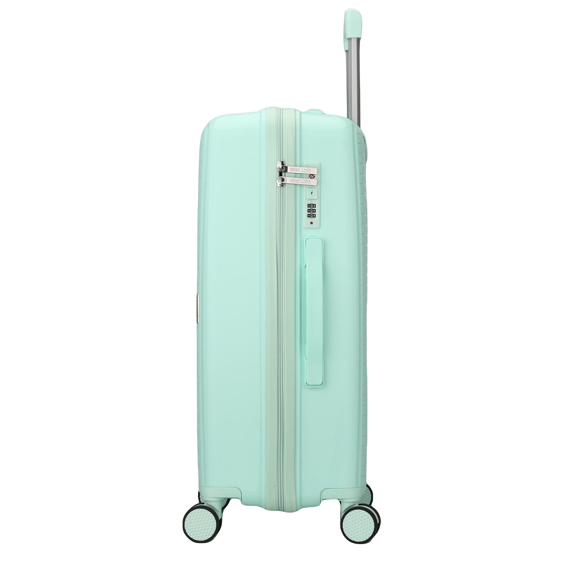 | Дополнительные характеристики | Кодовый замок; Прочный полипропиленовый корпус; Выдвижная телескопическая, алюминиевая ручка фиксируется в трех положениях; Ручки в верхней и боковой части чемодана для транспортировки в вертикальном и горизонтальном положении; Текстильная перегородка на молнии с карманом на молнии; Эластичные компрессионные ремни на фастексе предназначены для фиксации |