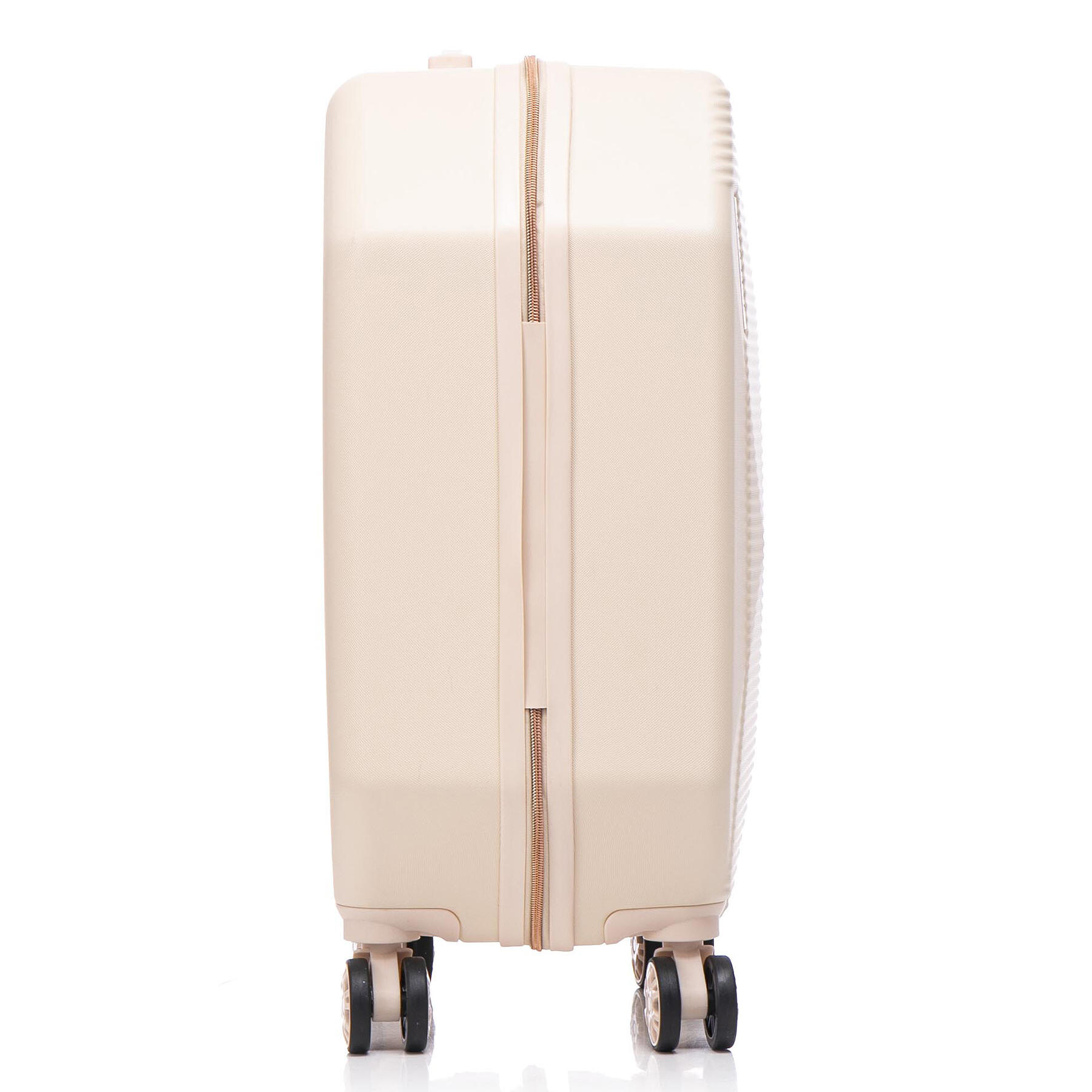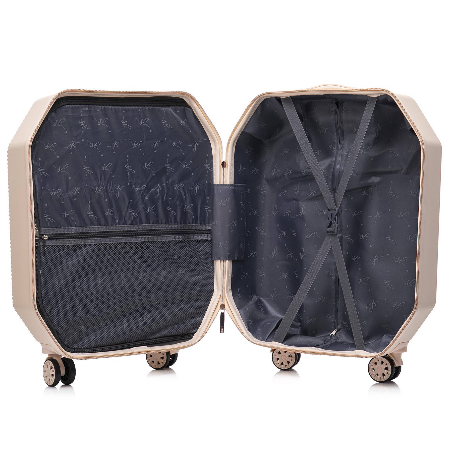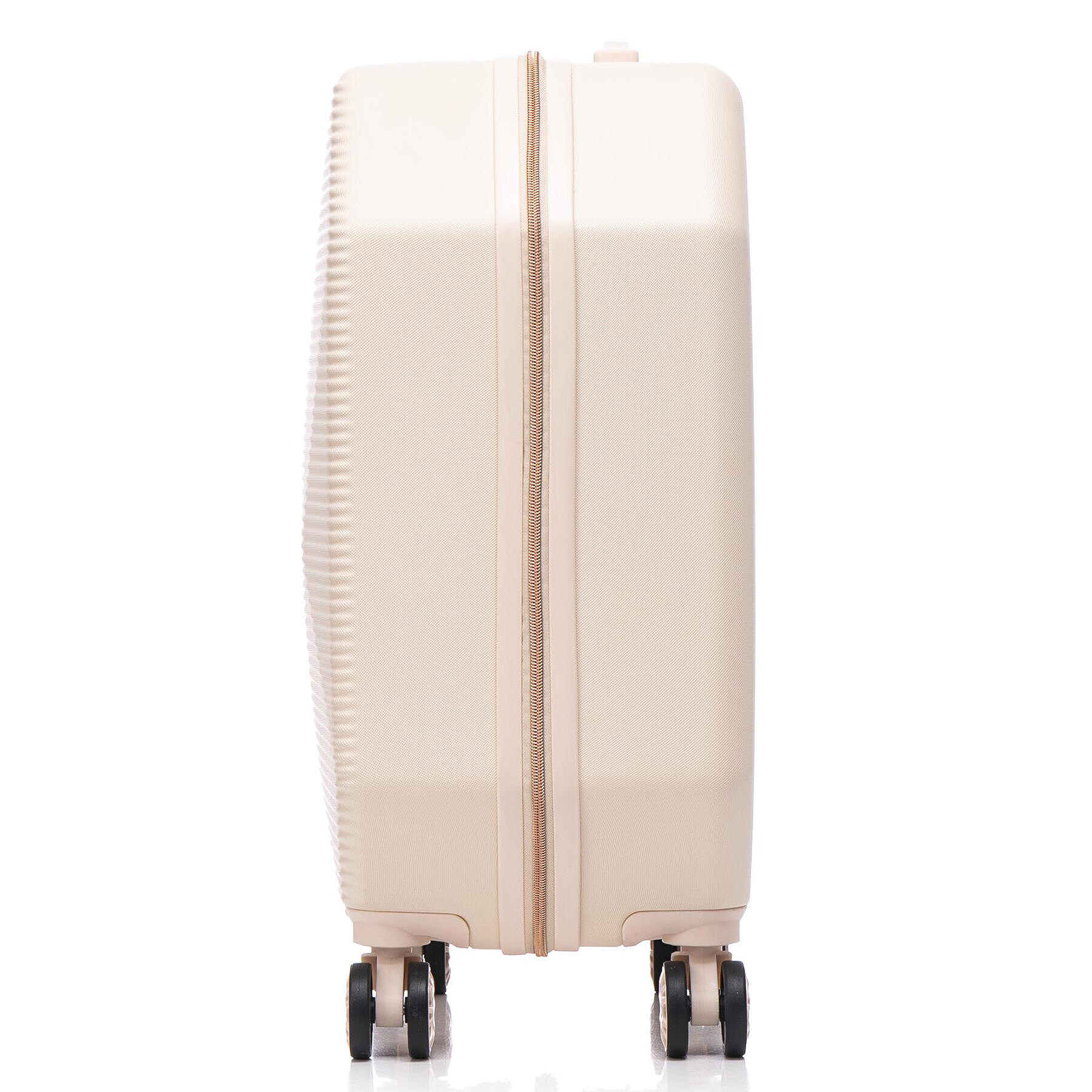 Цікавим, і більш зручним рішенням є розміщення кодового замка зверху, а абсолютно вся фурнітура виконана в одному кольорі з корпусом валізи.