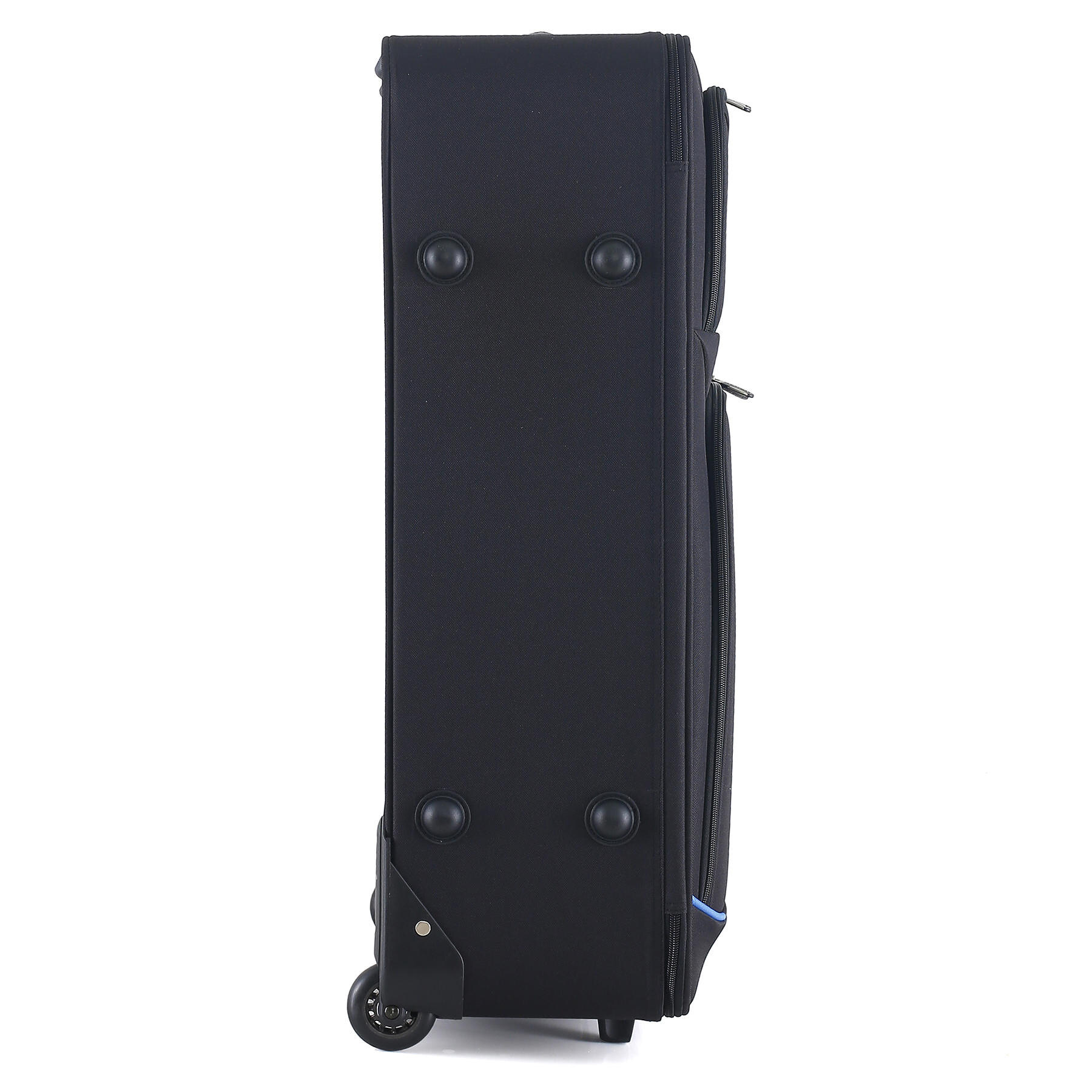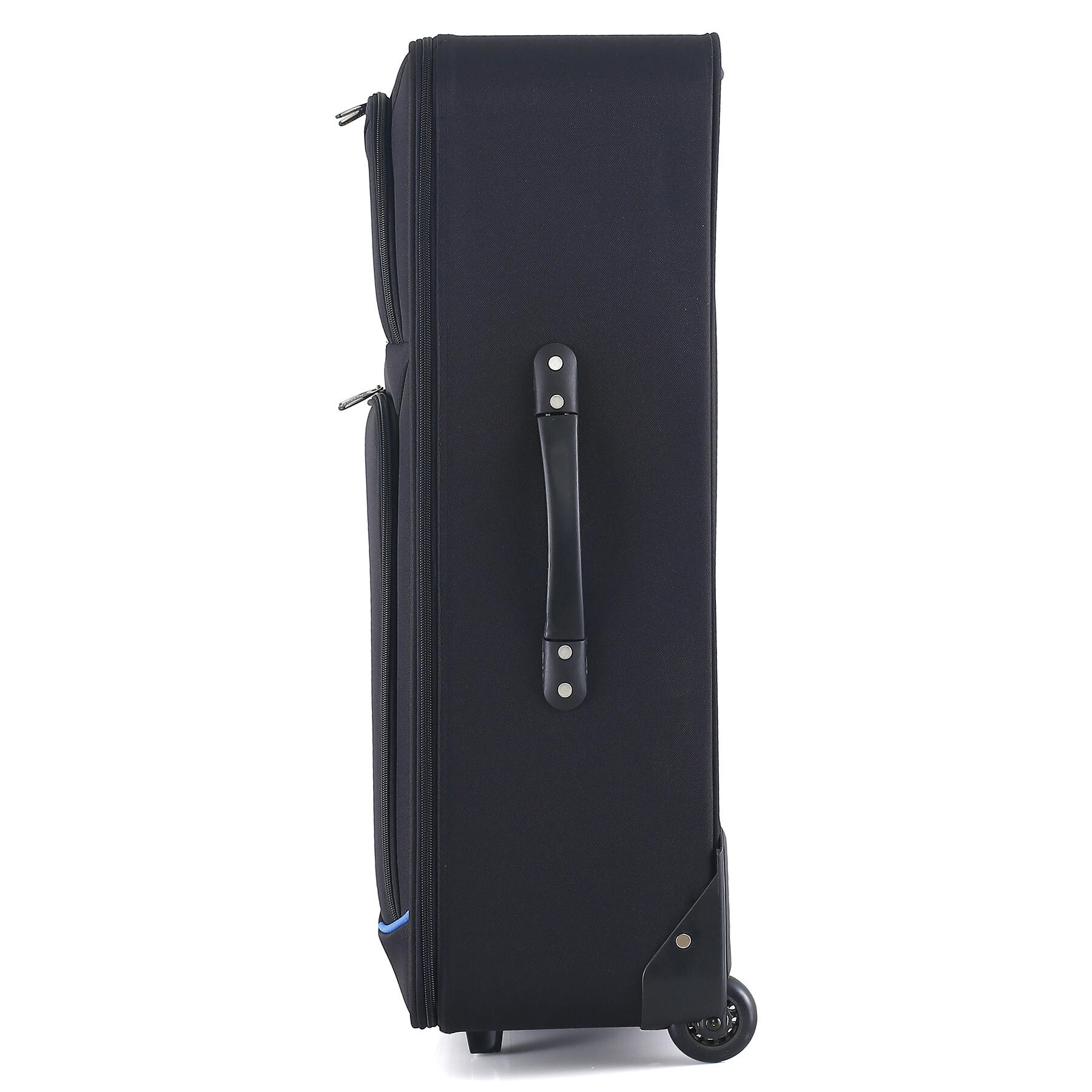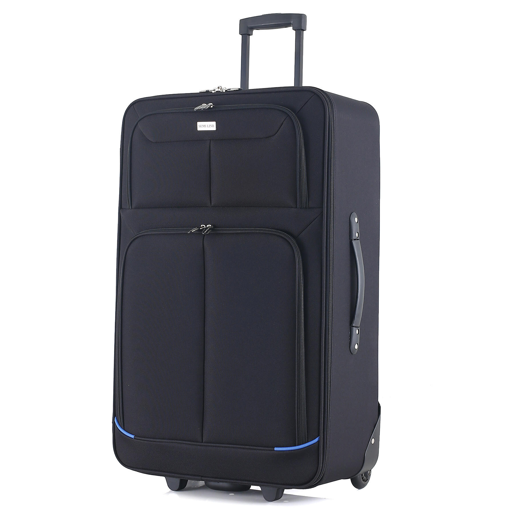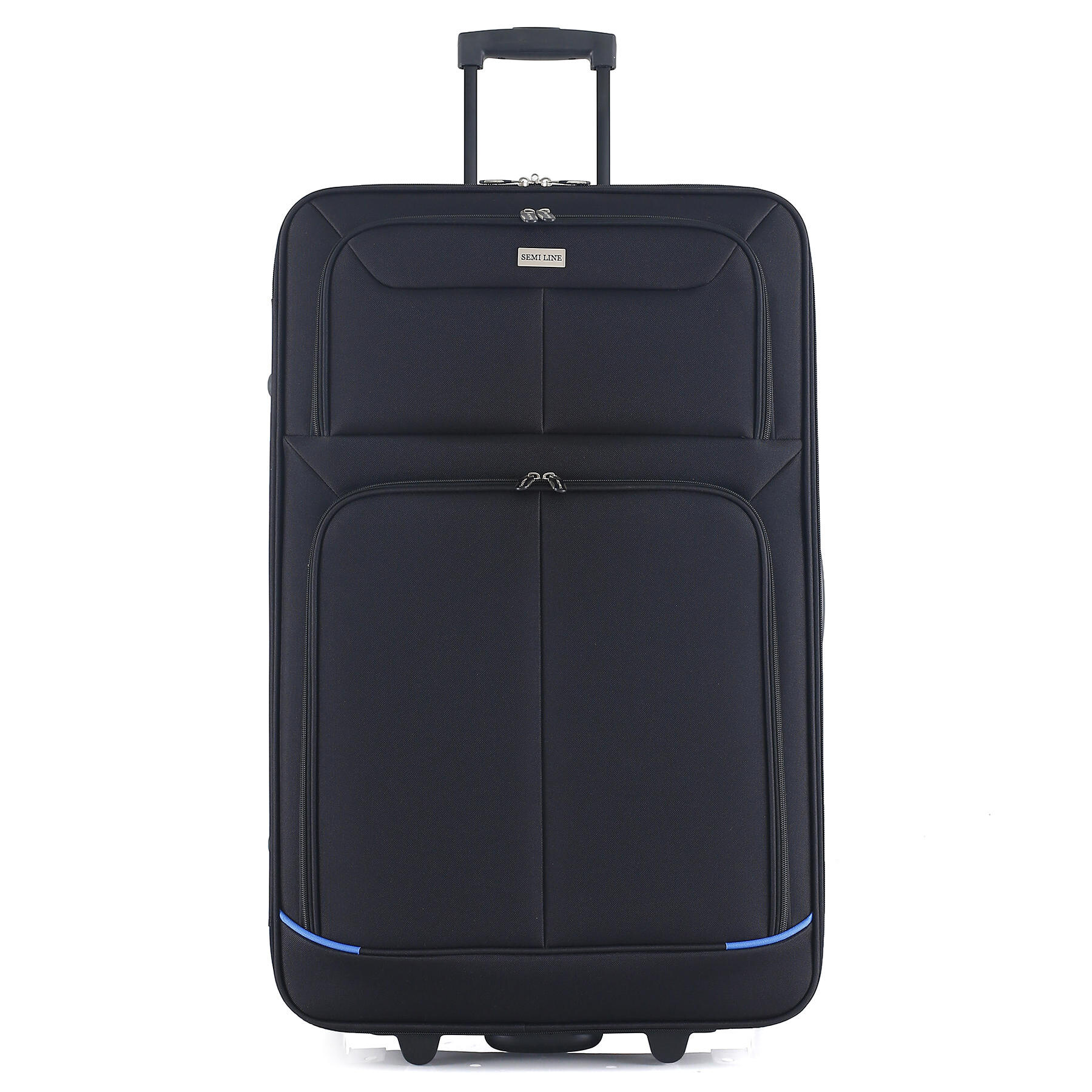 Дві сині смуги на фасаді роблять вигляд валізи більш виразним, а головне дозволять швидше знайти саме вашу валізу у багажних відділеннях серед багатьох інших схожих валіз. Дві глибокі кишені на фасаді здатні вмістити велику кількість речей першої необхідності. Для розміщення дрібних речей всередині валізи передбачена окрема кишеня на блискавці. Телескопічна ручка фіксується в двох положеннях.