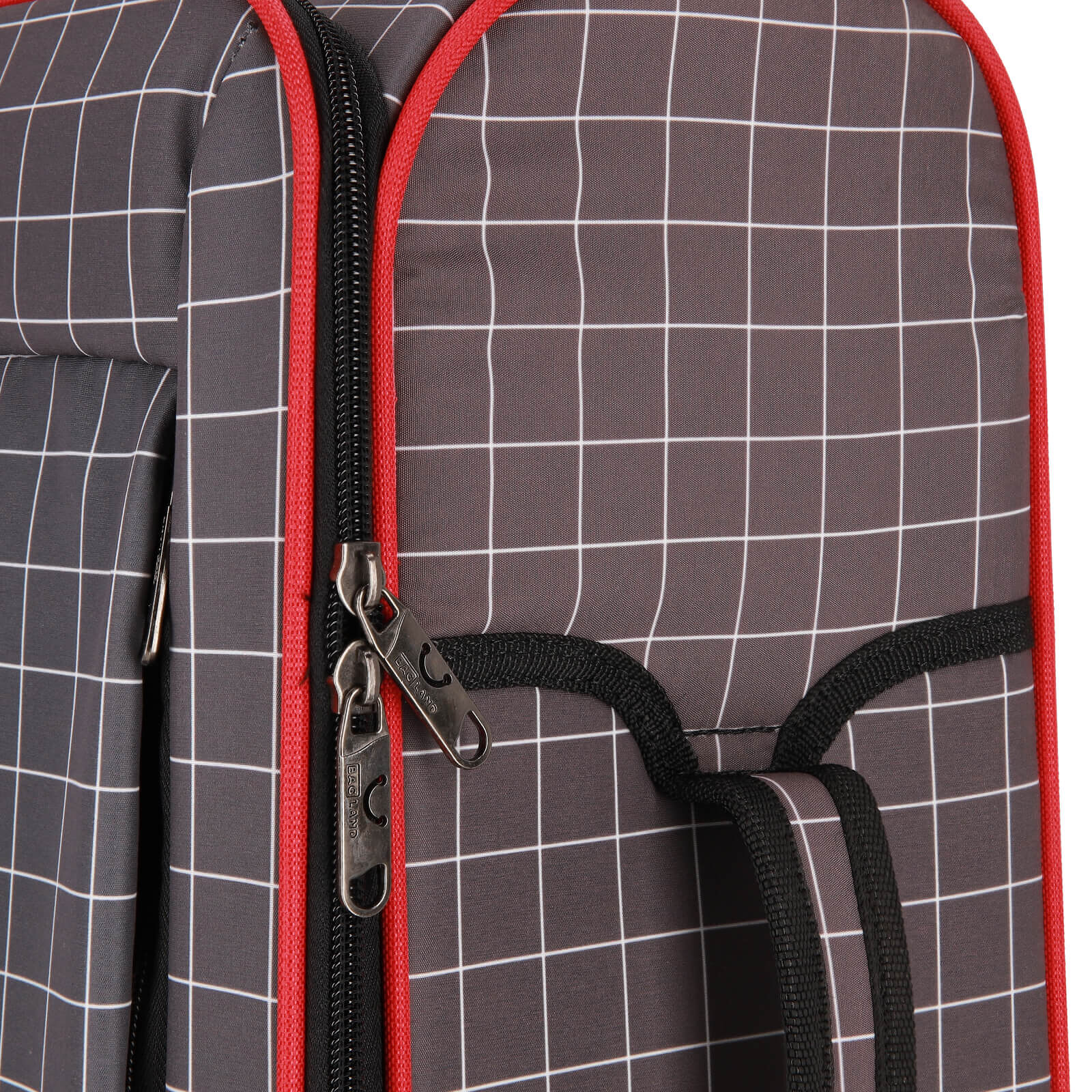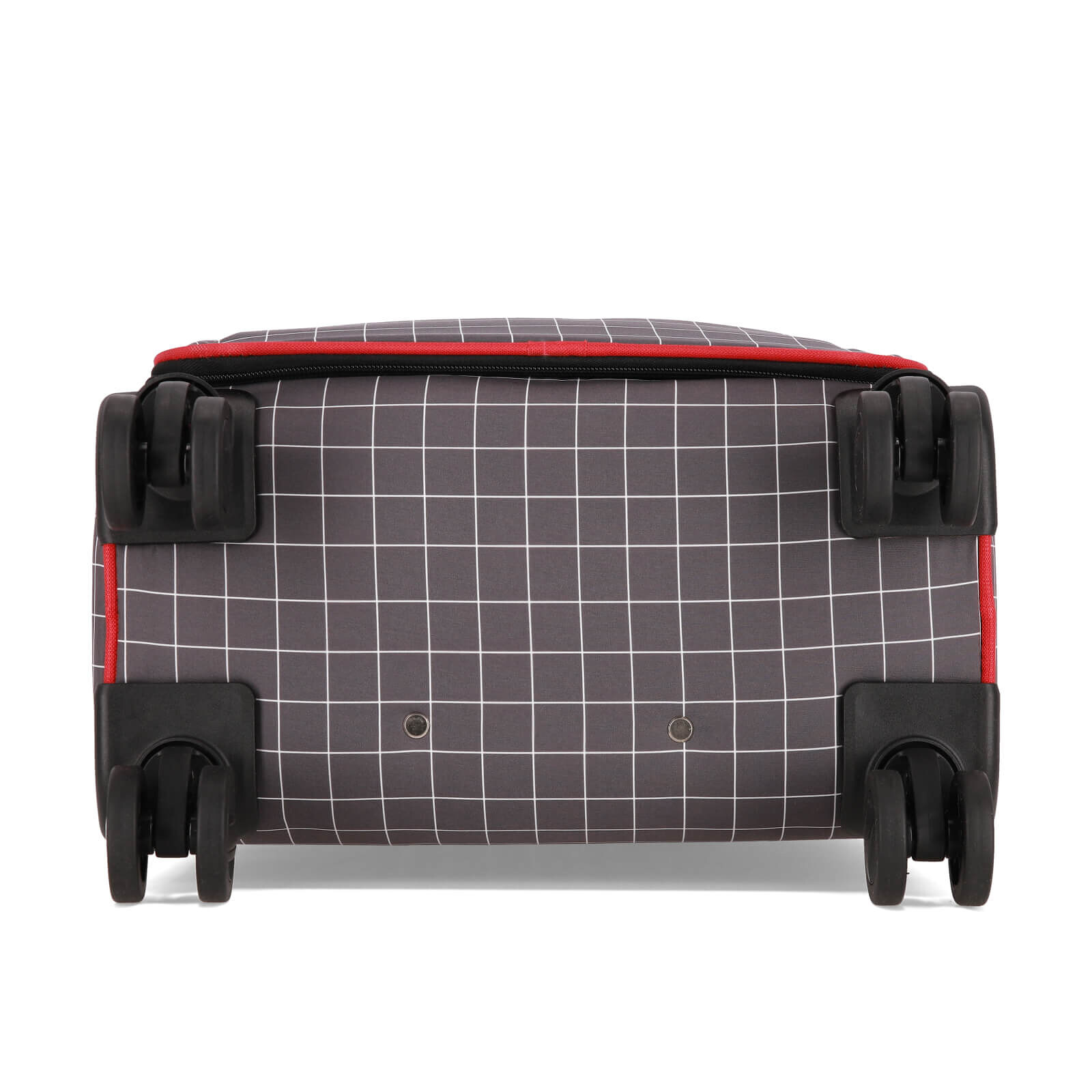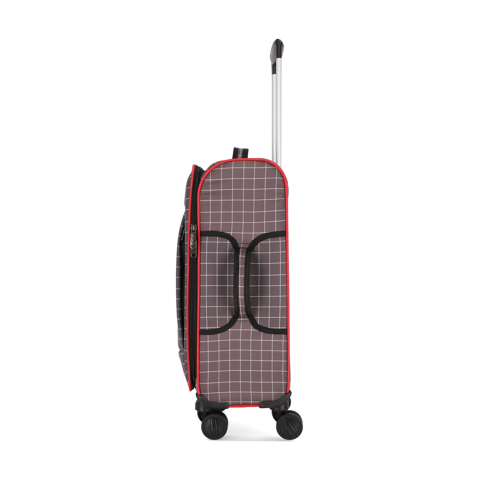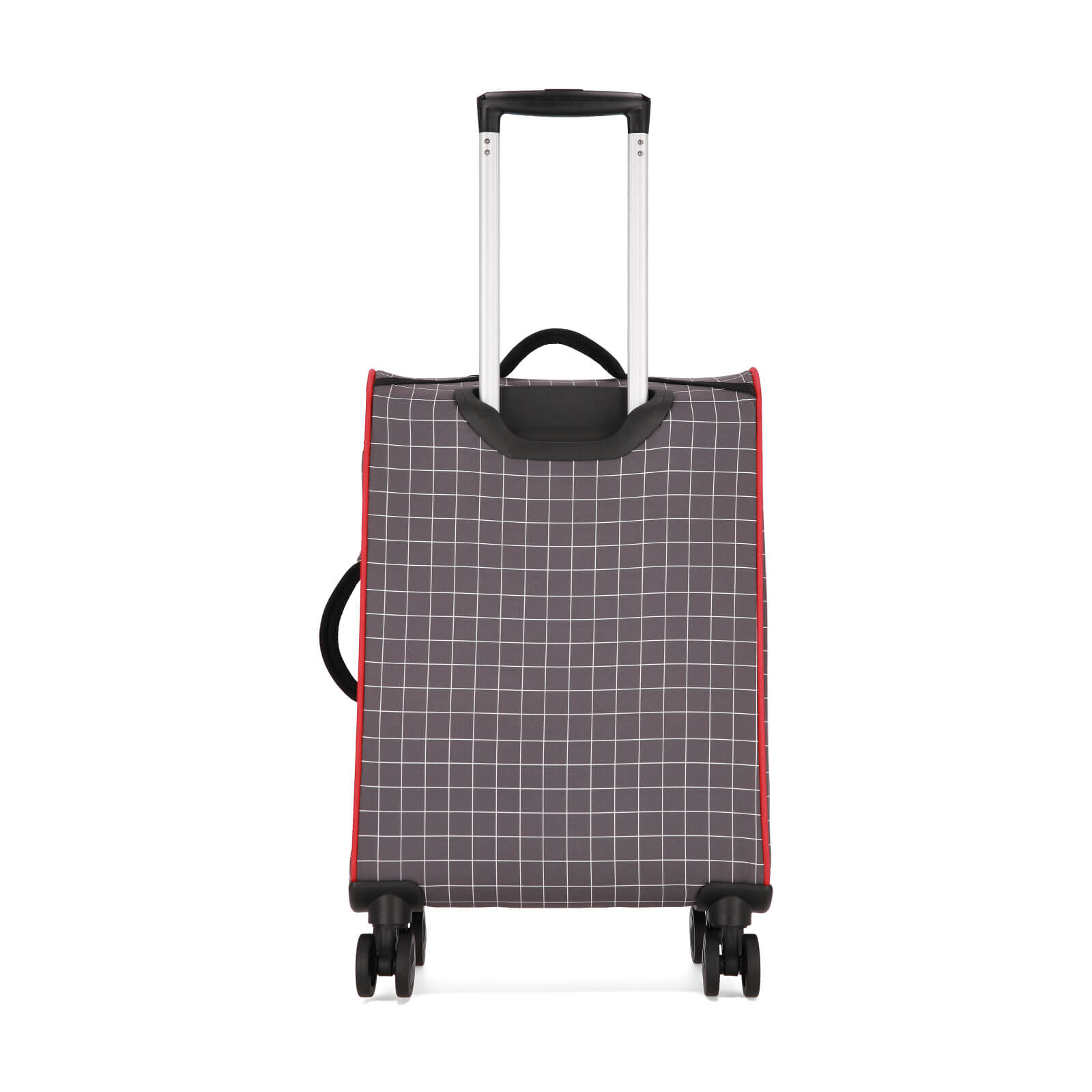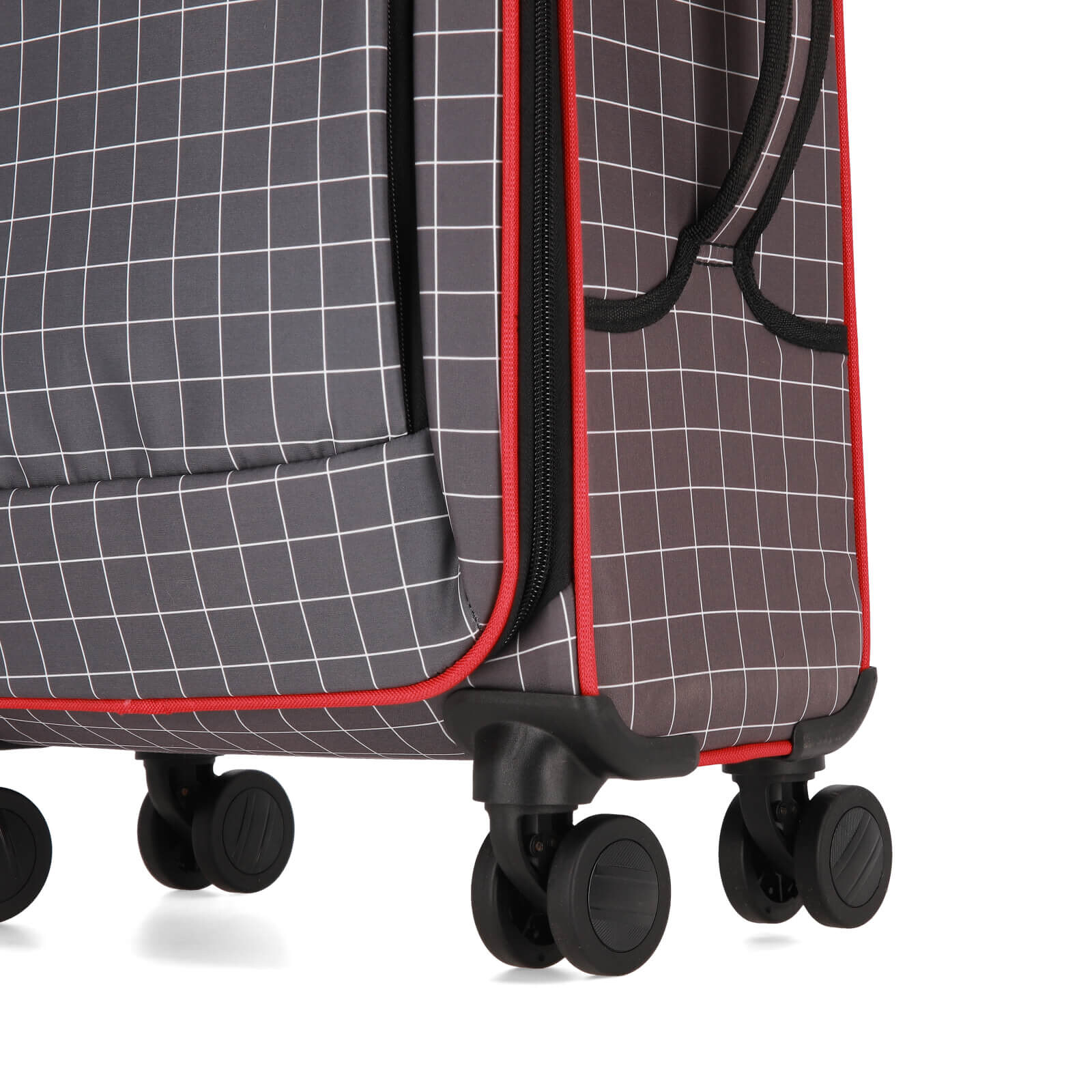 Валіза виготовлена з міцного матеріалу 600D W/R з водовідштовхувальними властивостями. Оснащена чотирма колесами, що обертаються на 360 градусів, телескопічною і боковою ручками, які забезпечують комфорт при підйомі, перенесенні та транспортуванні виробу.
