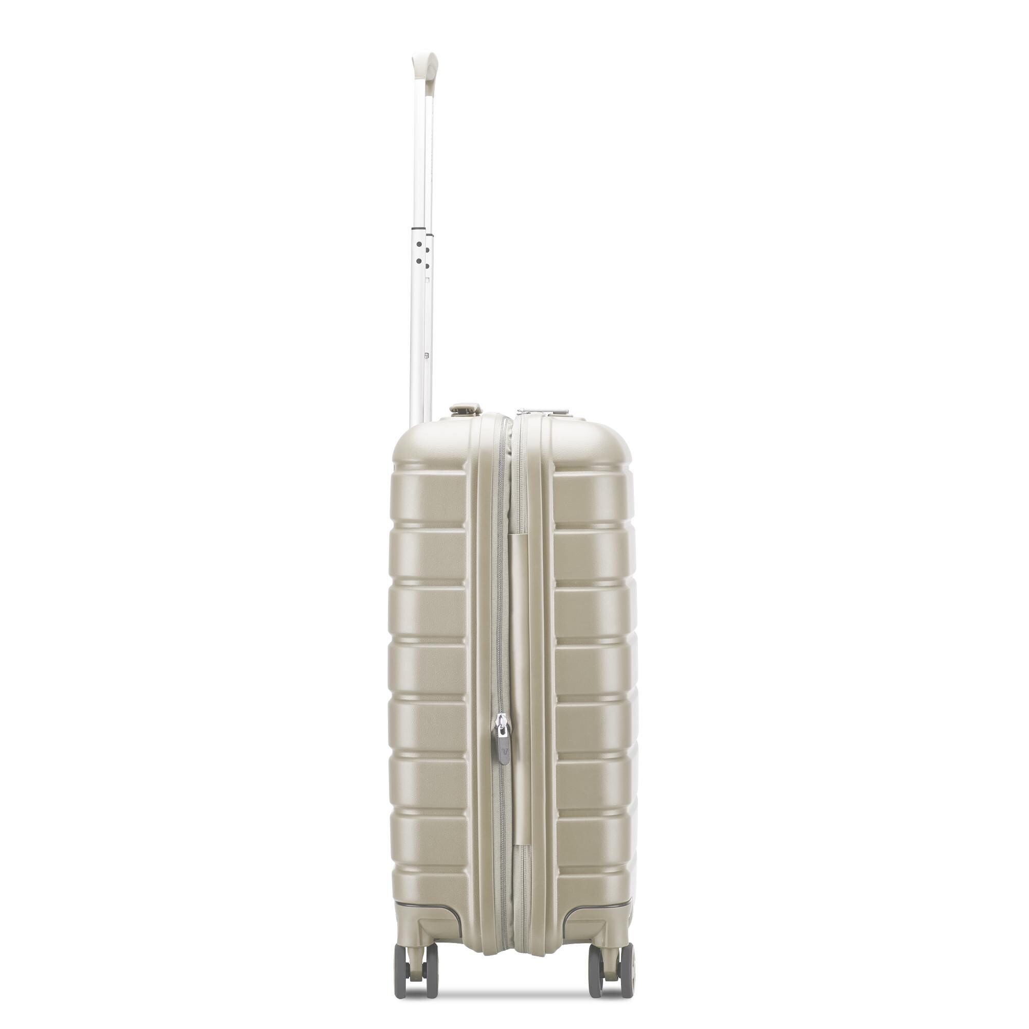 Маленька валіза оснащена 4 спареними, знімними і маневреними колесами. Для зручності переміщення передбачена еластична, підйомна пластикова ручка на верхній панелі, а також телескопічна ручка. Безпека і збереження багажу забезпечує вбудований кодовий замок з системою TSA. Виріб кладається з двох великих відділень, оснащених роздільниками та еластичними притискними ременями. Деталь, на яку варто звернути увагу: корковий адресник.
