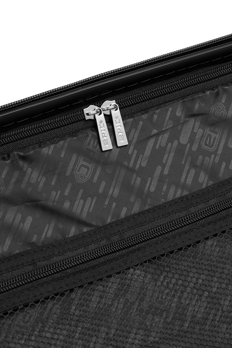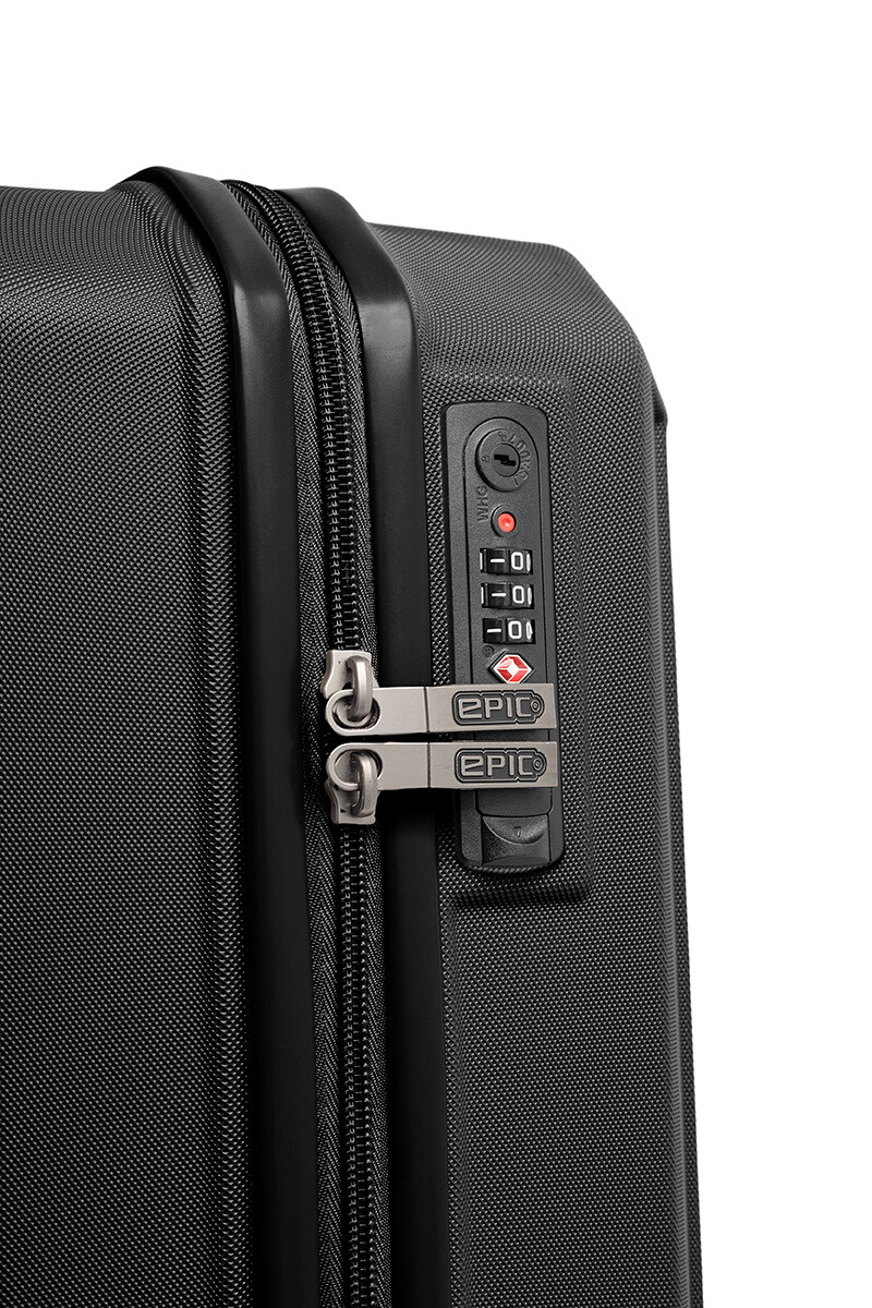 Валіза оснащена 4 подвійними колесами, які забезпечують чудову маневреність у всіх напрямках, також колеса виконані з мякої, але міцної і тихої суміші, які підтримуються подвійними герметичними картриджними підшипниками для додаткової плавності та довшого терміну служби. Зсередини повністю оснащений роздільниками для речей, ременями і практичними кишенями. Для зручності переміщення має висувну телескопічну ручку і підйомні ручки на верхній і бічній поверхнях. Аксесуар снащений вбудованим кодовим замком з системою TSA. Усі компоненти послідовно відбираються та тестуються, і, звичайно ж, їх можна замінити, це філософія Epic довговічного продукту.