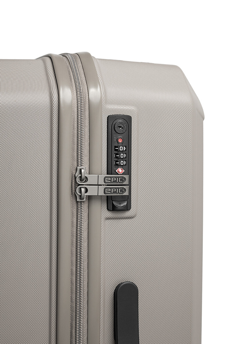 Валіза оснащена 4 подвійними колесами, які забезпечують чудову маневреність у всіх напрямках, також колеса виконані з мякої, але міцної і тихої суміші, які підтримуються подвійними герметичними картриджними підшипниками для додаткової плавності та довшого терміну служби. Зсередини повністю оснащений роздільниками для речей, ременями і практичними кишенями. Для зручності переміщення має висувну телескопічну ручку і підйомні ручки на верхній і бічній поверхнях. Аксесуар снащений вбудованим кодовим замком з системою TSA. Усі компоненти послідовно відбираються та тестуються, і, звичайно ж, їх можна замінити, це філософія Epic довговічного продукту.