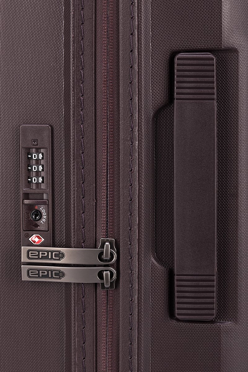 Валіза оснащена чотирма подвійними колесами з покращеною маневреностю, також колеса виконані з мякої, але міцної і тихої суміші, які підтримуються подвійними герметичними картриджними підшипниками для додаткової плавності та довшого терміну служби. Додатково, колеса мають EPIC Standard™ - система легкозмінних колес. Ще з особливостей даної моделі - це блискавка, має високу водонепроникність завдяки своїй прогумованій поверхні та відповідає найвищим стандартам гнучкості та довговічності в експлуатації. Для зручності переміщення є висувна телескопічна ручка і підйомні ручки на верхній і бічній поверхнях.