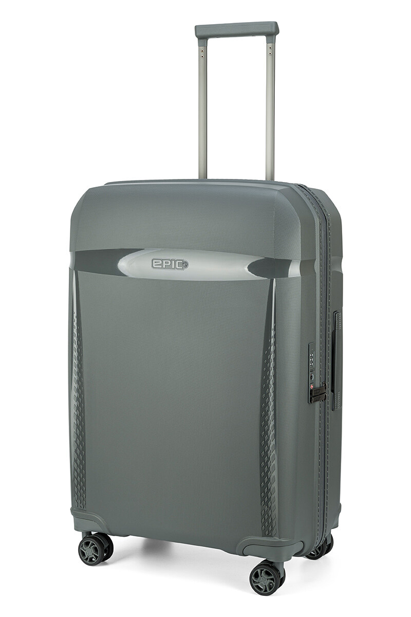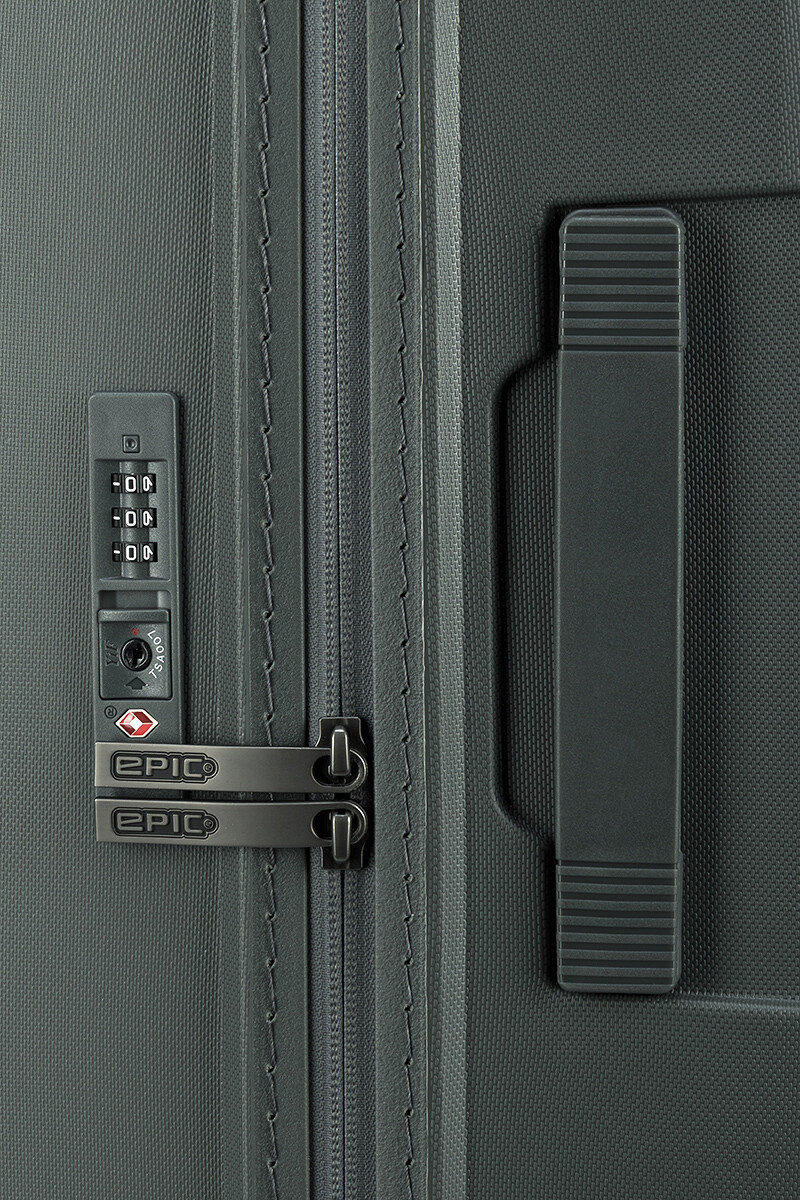 Валіза оснащена чотирма подвійними колесами з покращеною маневреностю, також колеса виконані з мякої, але міцної і тихої суміші, які підтримуються подвійними герметичними картриджними підшипниками для додаткової плавності та довшого терміну служби. Додатково, колеса мають EPIC Standard™ - система легкозмінних колес. Ще з особливостей даної моделі - це блискавка, має високу водонепроникність завдяки своїй прогумованій поверхні та відповідає найвищим стандартам гнучкості та довговічності в експлуатації. Для зручності переміщення є висувна телескопічна ручка і підйомні ручки на верхній і бічній поверхнях.