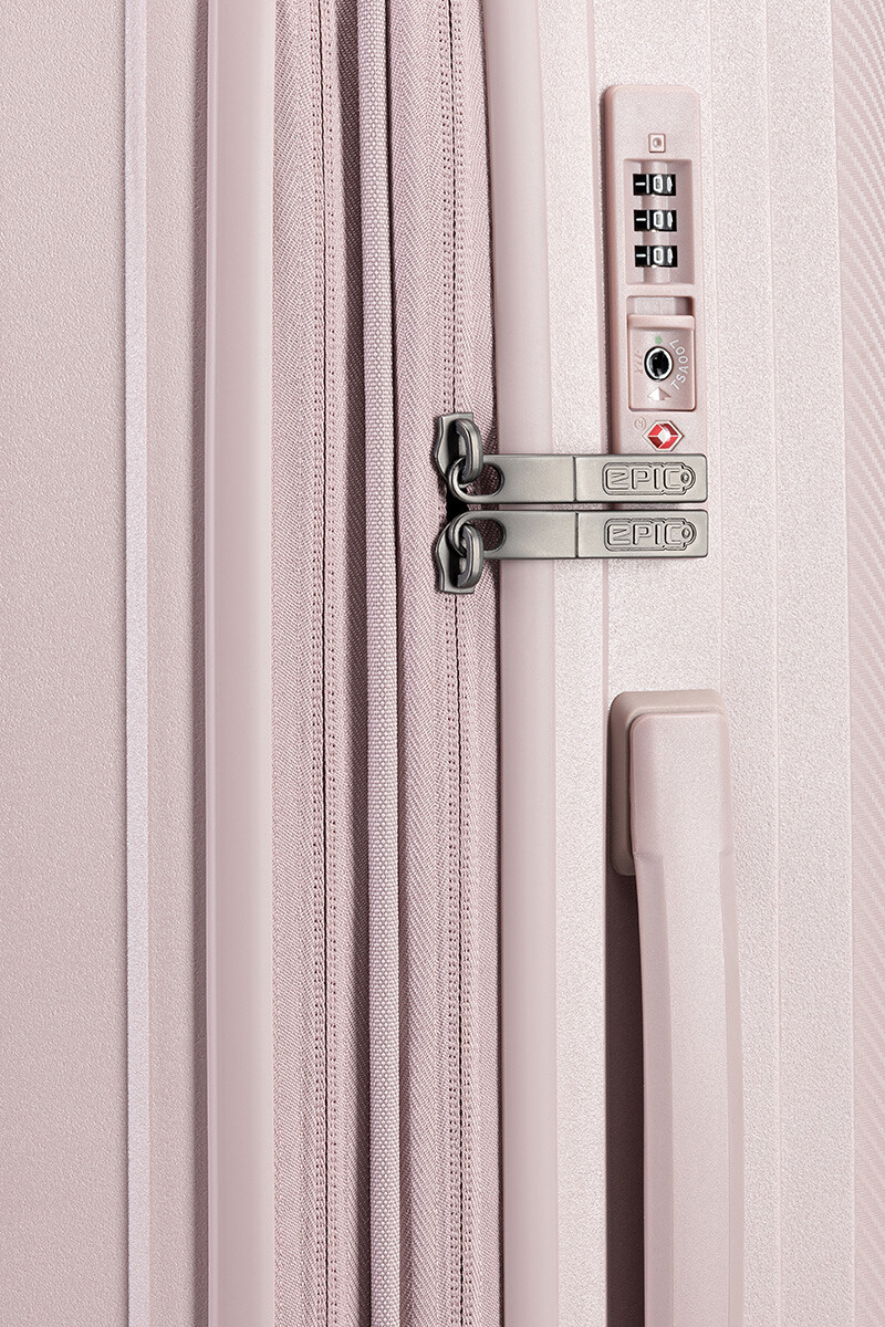 Валіза оснащена чотирма подвійними колесами з покращеною маневреностю, також колеса виконані з мякої, але міцної і тихої суміші, які підтримуються подвійними герметичними картриджними підшипниками для додаткової плавності та довшого терміну служби. Додатково, колеса мають EPIC Standard™ - система легкозмінних колес. Ще з особливостей даної моделі - це блискавка, має високу водонепроникність завдяки своїй прогумованій поверхні та відповідає найвищим стандартам гнучкості та довговічності в експлуатації. Для зручності переміщення є висувна телескопічна ручка і підйомні ручки на верхній і бічній поверхнях. Також, виріб має розширення, що дозволяє збільшити обсяг валізи.