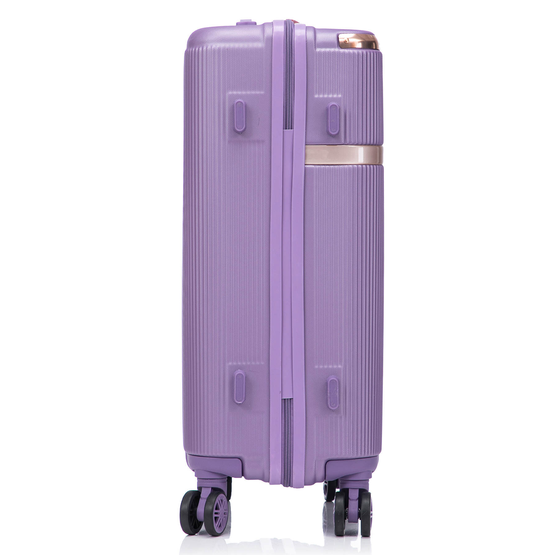Цікавим, і більш зручним рішенням є розміщення кодового замка зверху, а абсолютно вся фурнітура виконана в одному кольорі з корпусом валізи.