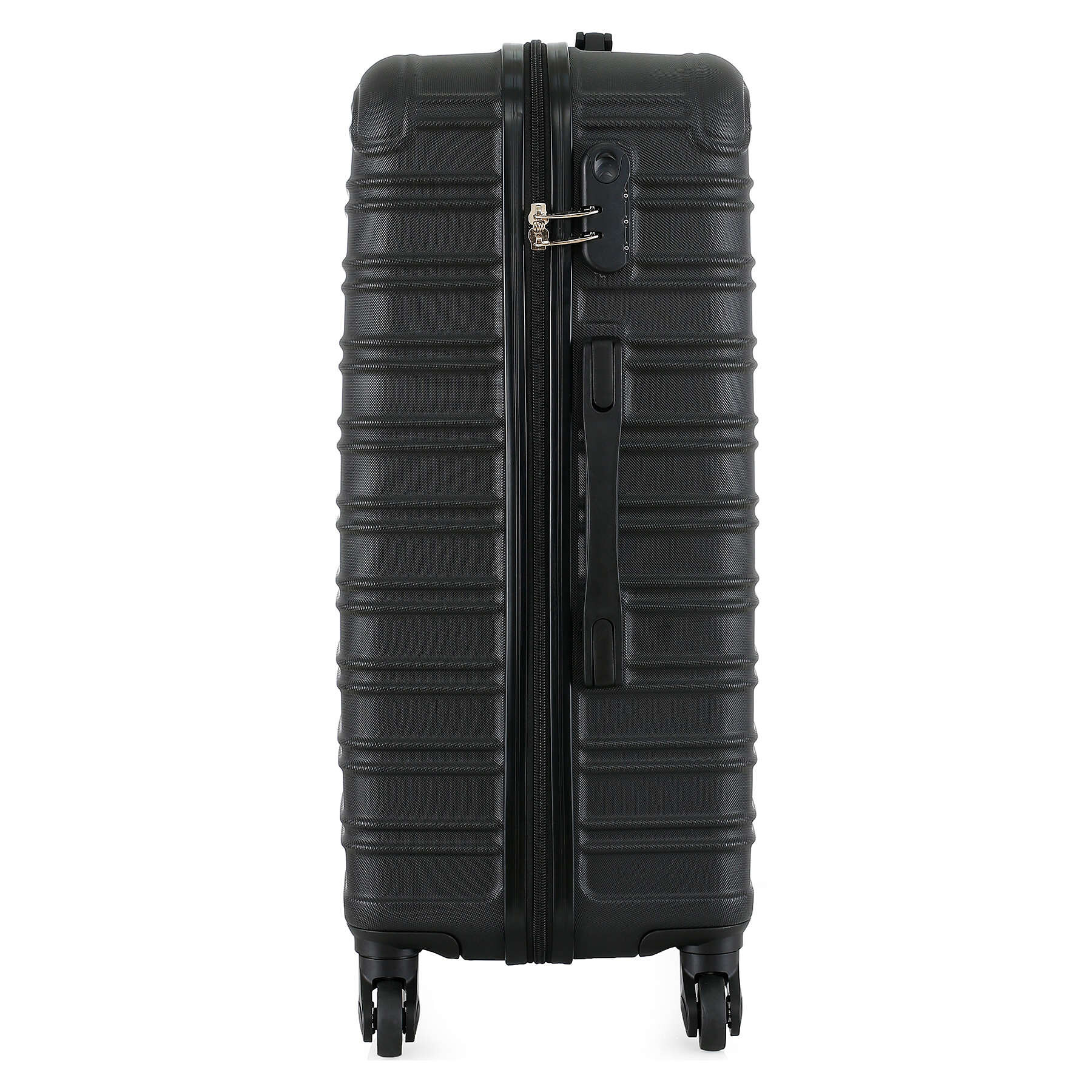 | Дополнительные характеристики | Кодовый замок; Четыре полноповоротных колеса обеспечивают высокую маневренность, плавное качение, крепятся на 4 винта изнутри; Выдвижная телескопическая, алюминиевая ручка фиксируется в трех положениях; Ручка с мягкой гелевой подложкой в верхней части части чемодана для транспортировки в вертикальном положении; Текстильная перегородка на молнии; Эластич |