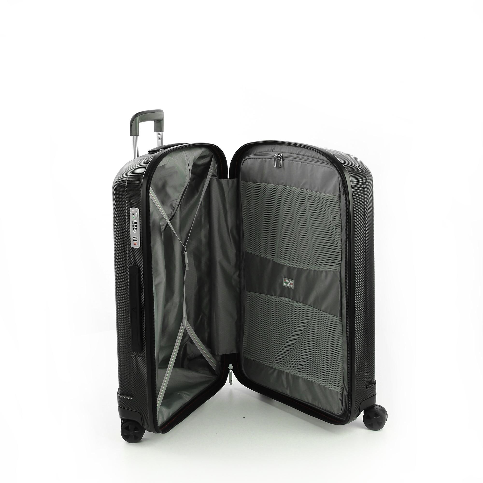 Колекція валіз Unica є однією з найбільш високопродуктивних в лінійці Roncato - результат ретельного дослідження передових технологій, спрямованих на отримання надлегких валіз. Серія виготовлена з міцного полікарбонату, з висувною телескопічною ручкою, чотирма колесами, що обертаються на 360 градусів, адресною табличкою і захищеною блискавкою. Усередині валізи є притискні ремені для багажу, текстильна кришка на блискавці.