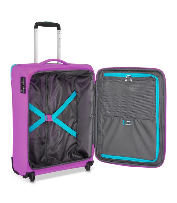 Маленький чемодан підходить для подорожей на не тривалий час. Виконано з поліестеру щільністю 150D, що дозволяє валізі бути зносостійкою і водовідштовхувальною. Оснащений містким основним відділенням з притискними ременями, також двома зовнішніми, невеликими кишенями. Для зручності переміщення чемодан оснащений двома одинарними колесами для більшої практичності, регульованою телескопічною ручкою і м'якою ручкою для перенесення на верхній частині валізи. Основною перевагою валіз серії Lite Soft є їх вага - всього 1,6 кг.