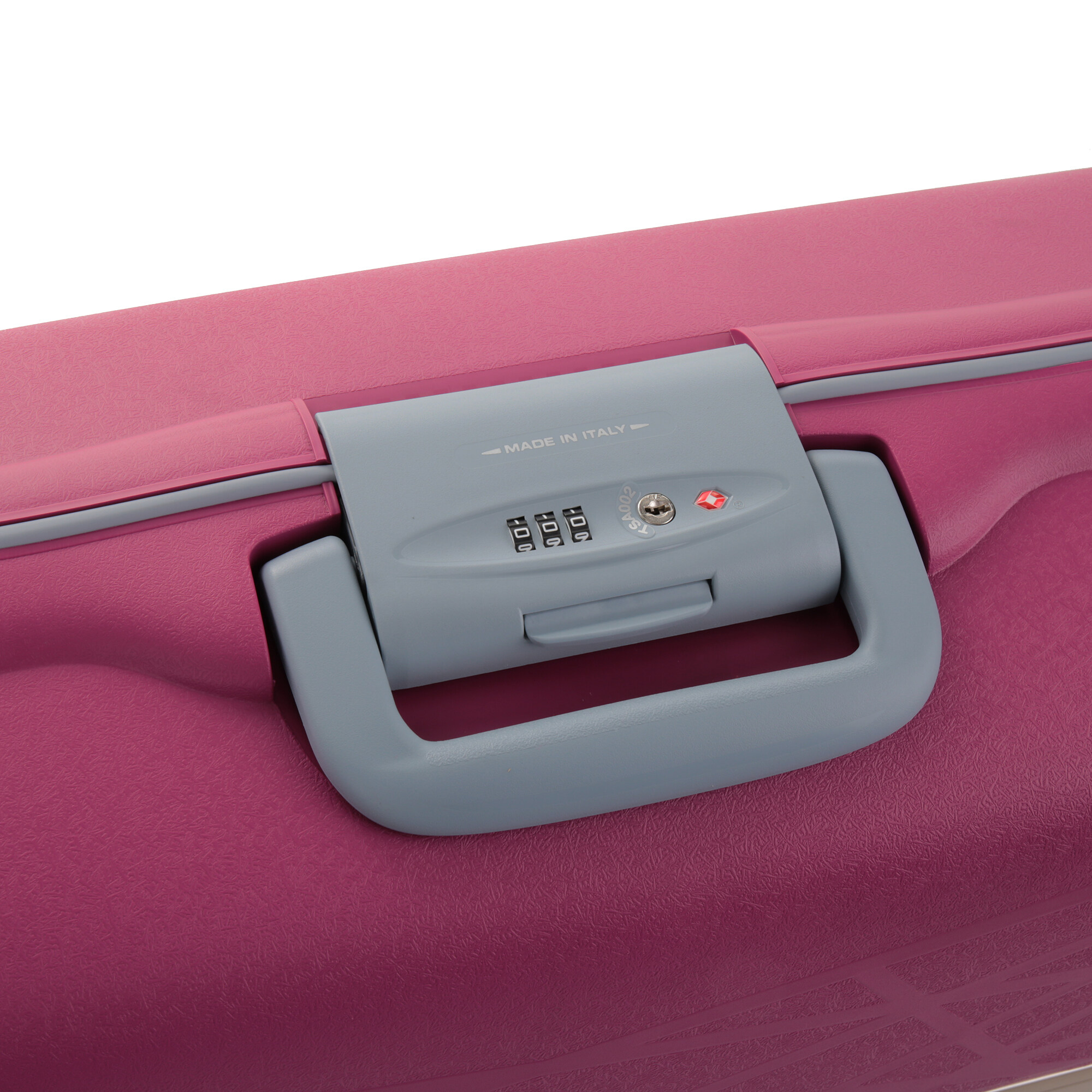 Середня валіза оснащена вбудованим кодовим замком з системою TSA, спареними колесами, що обертаються на 360̊, які надають валізі маневреність і збільшують її вантажопідйомність, всередині зручна і проста організація, передбачена кишеня-перегородка і притискні ремені.