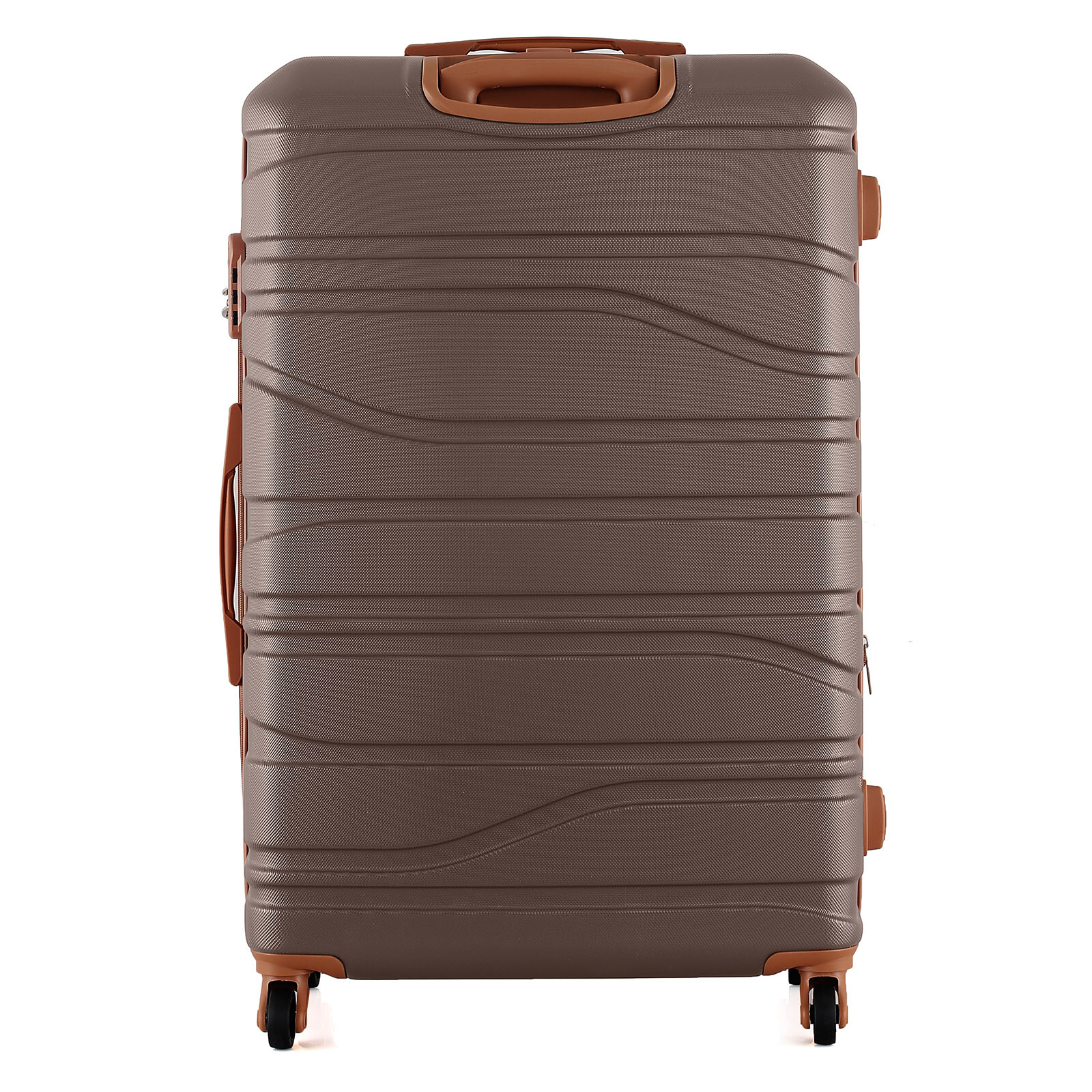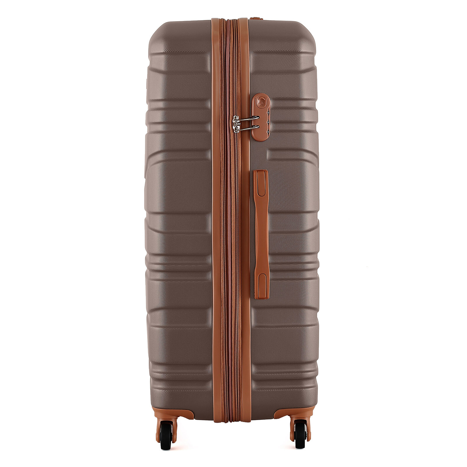 Корпус має рифлене покриття, яке приховує дрібні подряпини, а кодовий замок забезпечує надійний захист речей. Валіза оснащена чотирма повноповоротними колесами на 360°, що гарантують маневреність і стійкість, а також телескопічною ручкою, яка фіксується у трьох положеннях. Внутрішній простір розділений текстильною перегородкою з кишенею на блискавці, є еластичні компресійні ремені для фіксації одягу. Для зручності транспортування передбачені верхня ручка з м’якою гелевою підкладкою та бічна ручка.