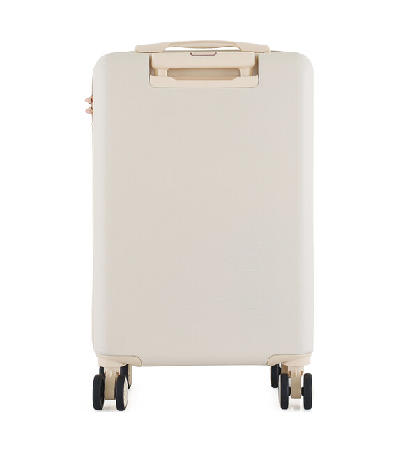 Головною перевагою валізи Semi Line 20" (S) Ecru (T5757-2) є великі здвоєні колеса, що обераються на 360° та забезпечують виняткову маневреність і стійкість, а також утоплений кодовий замок, який захищає речі та не виступає над корпусом, зберігаючи його цілісність і стильний вигляд. Додатково комфорт під час транспортування забезпечує верхня ручка з м’якою гелевою накладкою.