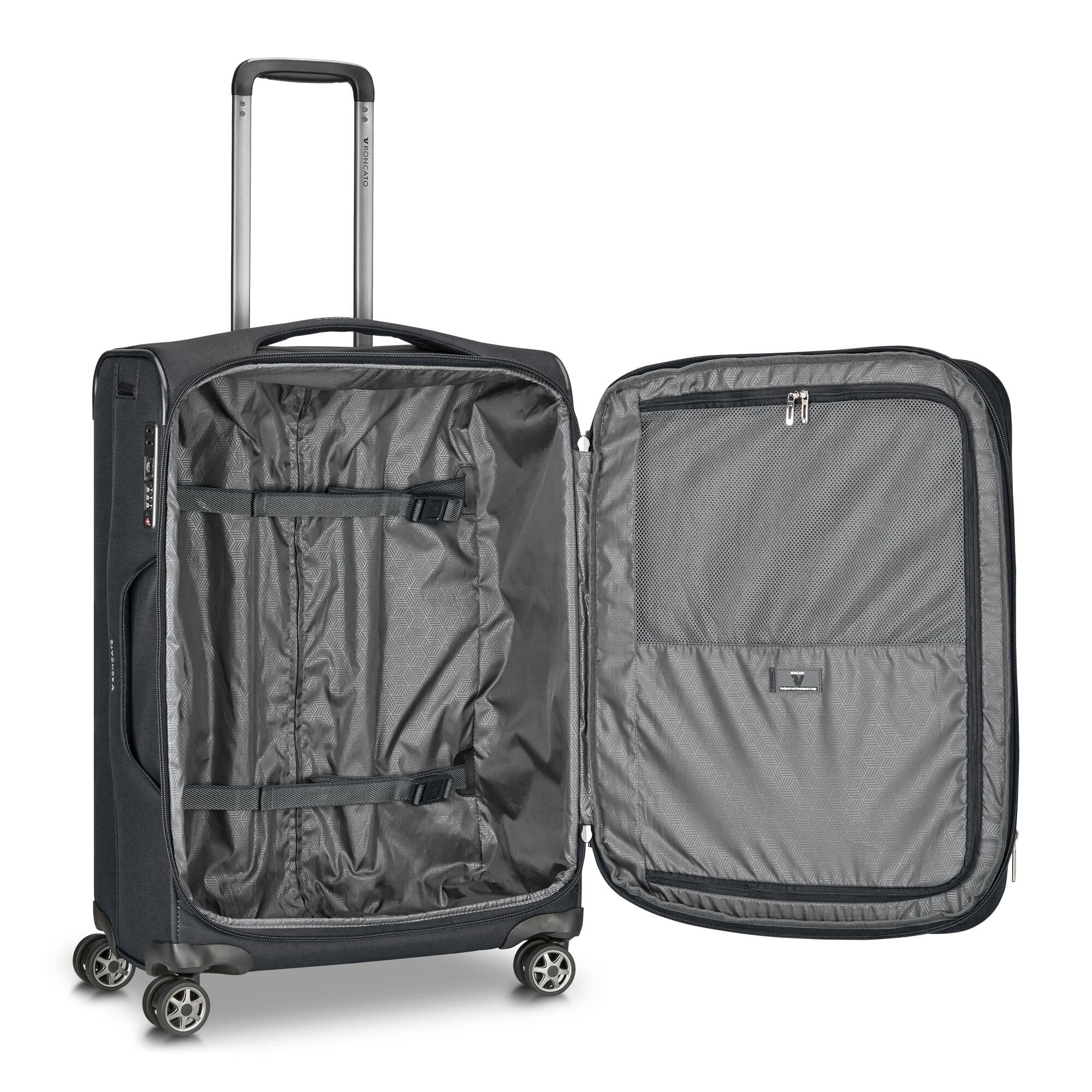 Gateway – це нова колекція тканинних валіз від Roncato, яка поєднує сучасний дизайн з винятковою функціональністю. Колекція включає широкий асортимент товарів: рюкзаки-ручна поклажа, ідеальні для недорогих подорожей, сумки на колесах, косметичні сумки, дорожні сумки, сумки для одягу (портплед) та косметичні футляри, створюючи повний асортимент для будь-якої пригоди. Ця лінійка розроблена для тих, хто любить подорожувати без компромісів, пропонуючи легкі, добре організовані вироби, які готові задовольнити всі потреби тих, хто подорожує у відпустку чи на роботу. Подорожувати з Gateway означає пересуватися безпечно, практично, легко та стильно.