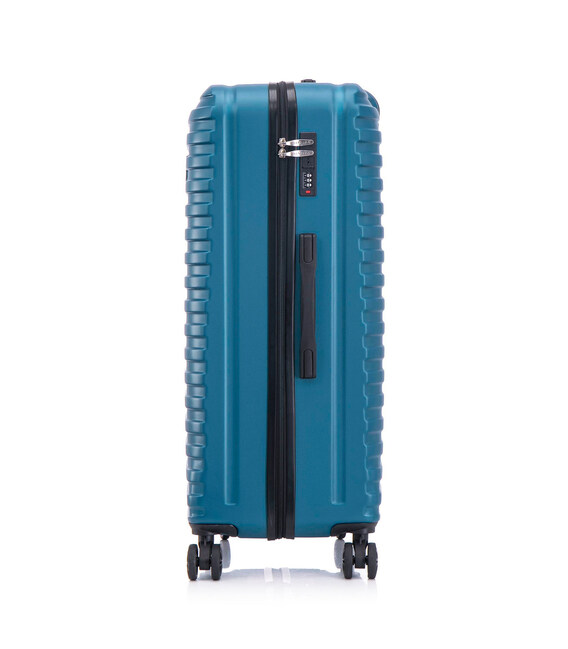 | Дополнительные характеристики | Утопленный кодовый замок; Четыре спаренных колеса обеспечивают высокую маневренность; Выдвижная телескопическая стальная ручка, стальная ручка фиксируется в трех положениях; Ручки с мягкой гелевой подложкой в верхней и боковой части части чемодана для транспортировки в вертикальном и горизонтальном положении; Текстильная перегородка с карманом на молнии |
