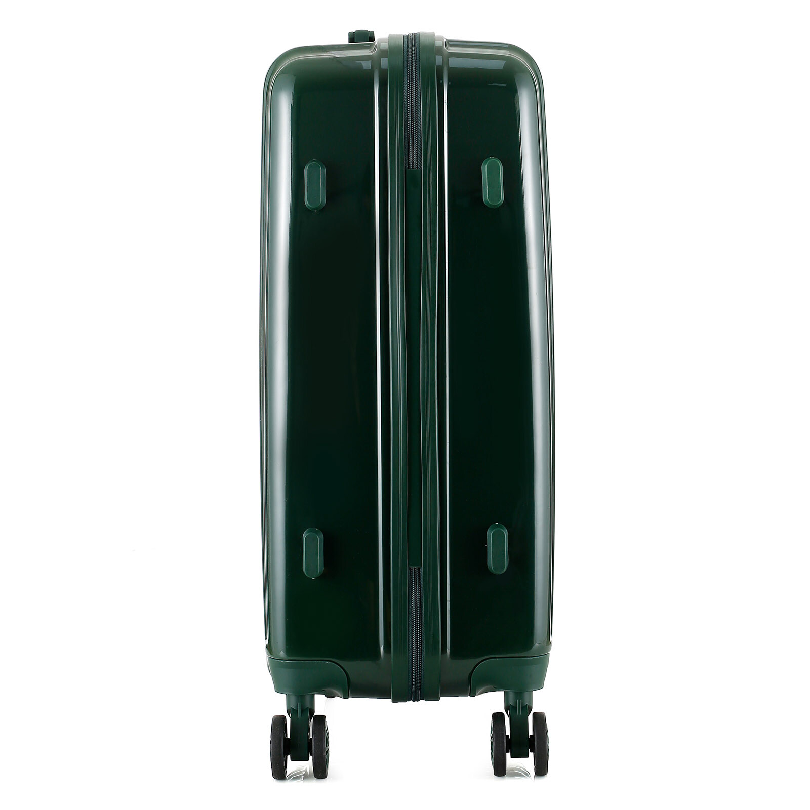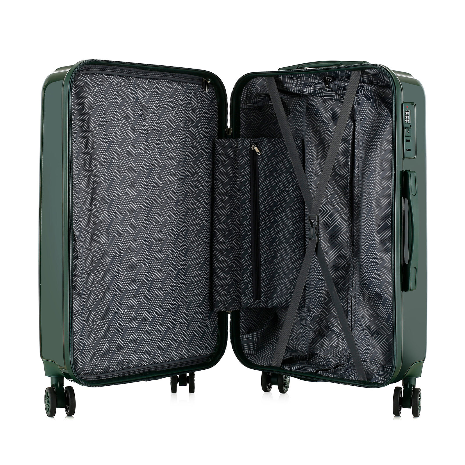До того ж це надійні валізи, корпус яких зроблений з міцного композиту полікарбонату та ABS-пластику. Кодовий замок не виступає за площину валізи, отже його практично неможливо пошкодити, а він в свою чергу покликаний захистити вміст вашої валізи. Спарені полегшені колеса зі спицями забезпечують стійкість, маневреність та плавний рух в будь-якому напрямку. Легка алюмінієва телескопічна ручка має три проміжних положення по висоті, а ручка для перенесення валізи в руках має м'яку гелеву підкладку. Валіза також має м'яку внутрішню підкладку, завдяки чому делікатні речі будуть більш надійно захищені в середині від пошкоджень при контакті з внутрішньою частиною телескопічної ручки. Для розміщення дрібних речей всередині валізи передбачена окрема кишеня на блискавці.