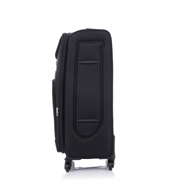 - Широкі, м'які ручки у верхній і бічній частині валізи для зручного транспортування у вертикальному і горизонтальному положенні.