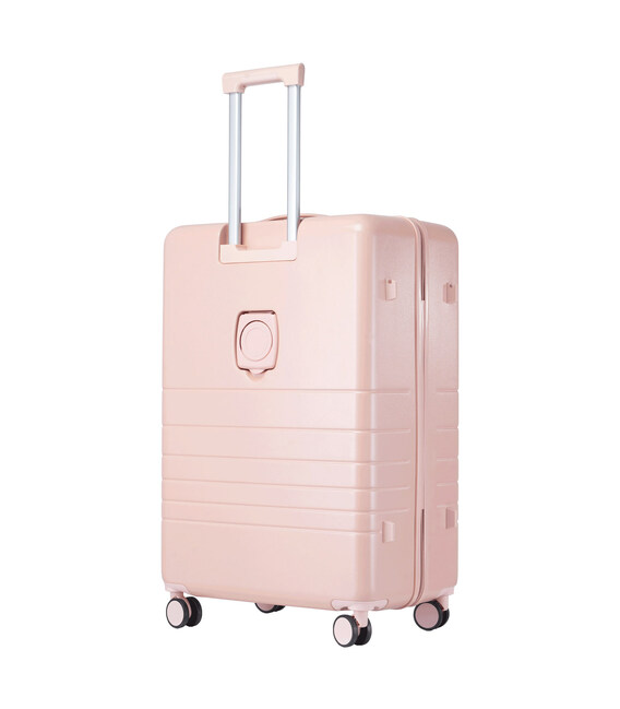 - Повноповоротні колеса - дана модель оснащена чотирма обертовими на 360° здвоєними колесами. Здвоєні колеса забезпечують кращий розподіл ваги та стійкість валізи, відмінне зчеплення, маневреність та мають більшу зносостійкість. Колеса кріпляться на 4 гвинти зсередини, що забезпечує збільшену стійкість при ударному навантаженні з будь-якого боку і дозволяє їх замінити у разі зносу.