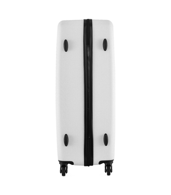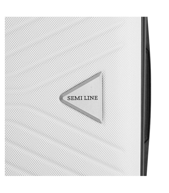 Валіза Semi Line T5970-3 компактна валіза з міцного ABS-пластику білого кольору. Рифлений візерунок лицьової та тильної сторони забезпечує додаткову міцність корпусу, а горизонтальні смуги додають елегантності та створюють неперевершений візуальний ефект. Валіза оснащена стальною телескопічною ручкою, яка фіксується у двох положеннях, ручка для перенесення валізи в руках має м'яку гелеву підкладку, внутрішній простір розділений текстильною перегородкою з кишенею на блискавці. Для організації речей передбачена додаткова внутрішня кишеня та еластичні компресійні ремені. Кодовий замок покликаний захистити вміст вашої валізи.