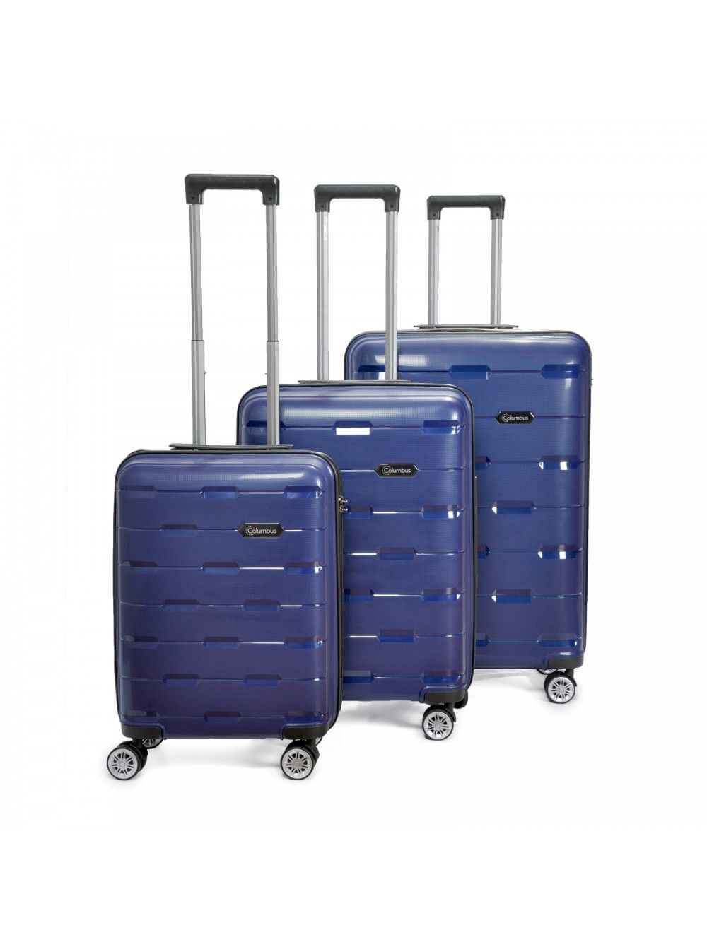 Надлегка та міцна валіза на 8-ми (4х2) колесах TM Columbus. Оснащена кодовим замком системи TSA, телескопічною алюмінієвою ручкою з фіксаторами. Всередині обшита тканиною, має 2 відділення, що розділяються діафрагмою та кишеню на блискавці для дрібних речей; еластичні паски для фіксації речей.