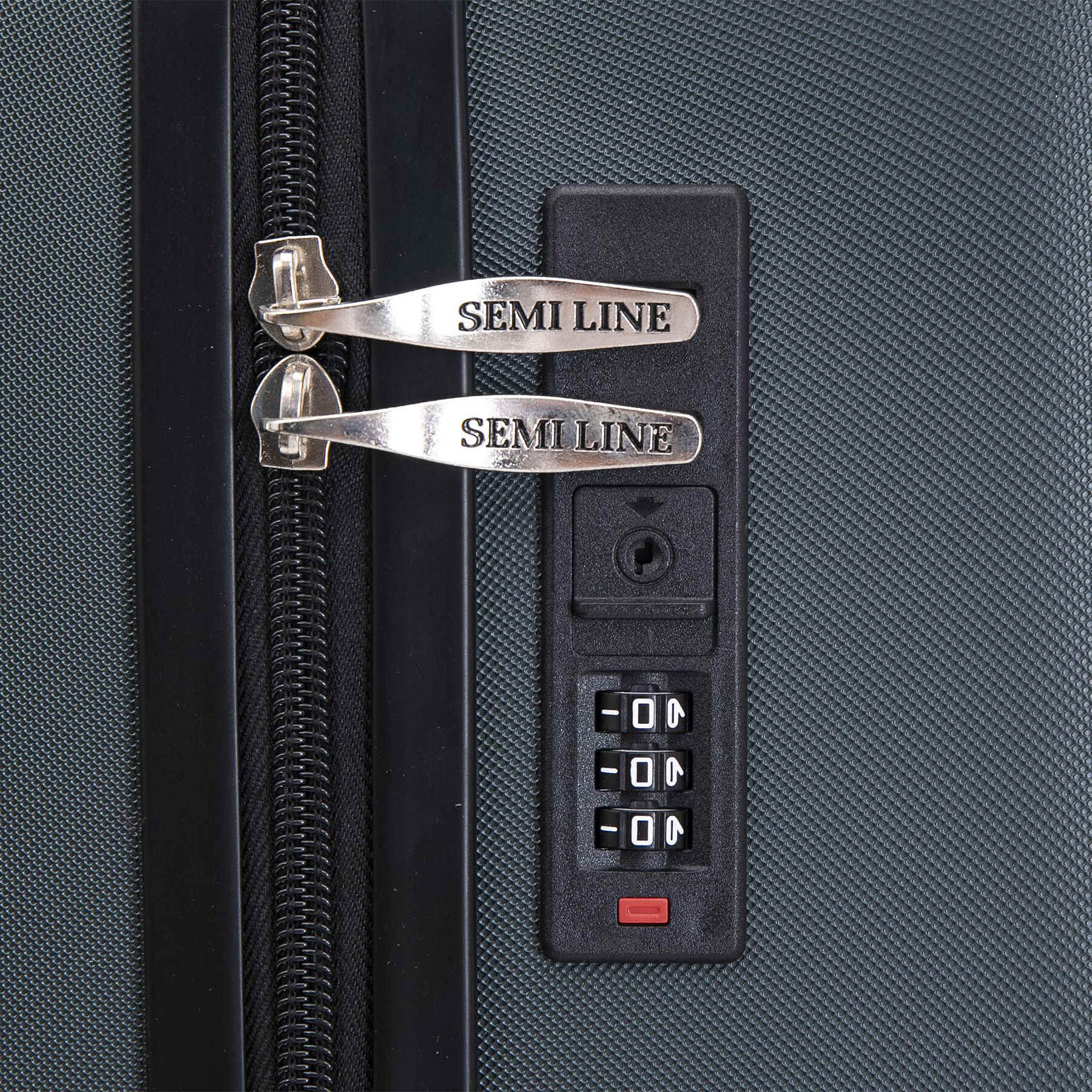 Semi Line T5859-3 виглядає максимально презентабельно і має в своєму арсеналі ряд конструктивних рішень, що роблять її не лише привабливою а й функціональною. Валіза оснащена "утопленим" кодовим замком, що не виступає над поверхнею валізи, оснащена спареними повноповоротними колесами, і є однією з найбільш легких серед свого типорозміру. Внутрішній простір розділений текстильною перегородкою на блискавці на дві частини, а для дрібних речей передбачена окрема кишеня на перегородці.