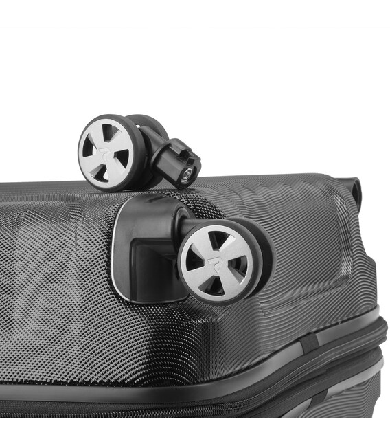 Валіза оснащена подвійними безшумними колесами, що обертаються на 360̊, які надають виробу маневреність, вбудованим кодовим замком з системою TSA, подвійним захистом блискавки High Tech Security Zip, сталевою, зміцненою телескопічною системою, прогумованими підйомними ручками для зручності переміщення, відмінною організацією всередині та знімною підкладкою. Також, дана колекція з розширенням, що дає +25% місткості валізам.