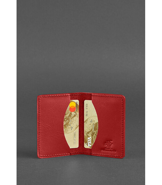 Компактна і мініатюрна візитниця для найнеобхідніших і потрібних карт. Вона вміщує до 10 карток. Виготовлена червона візитниця з натуральної шкіри краст.