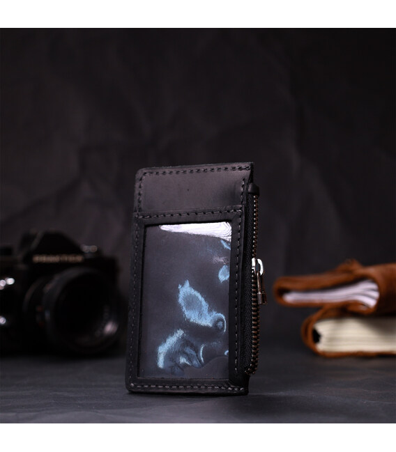 Зручний шкіряний картхолдер ручної роботи із натуральної висококласної вінтажної шкіри. На лицьовій стороні виріб має тиснений логотип виробника Grande Pelle. Аксесуар складається з трьох відділень під картки, відділення для пропуску під плівкою, відділення для монет або ключів, а також тримача смарт-трекера Apple AirTag. Крім зручного функціоналу фішкою цього картхолдера є тримач для смарт трекера Apple AirTag, це сучасний пристрій, що визначає місцезнаходження речі, до якої він прикріплений. Завдяки компактним розмірам аксесуара він чудово поміщається в гаманець, кишеню чи сумку будь-якого розміру, що допоможе користувачам легко знайти втрачені чи забуті речі. Відмінний аксесуар для сучасної людини. Увага, смарт трекер Apple AirTag не входить у комплект з аксесуаром!