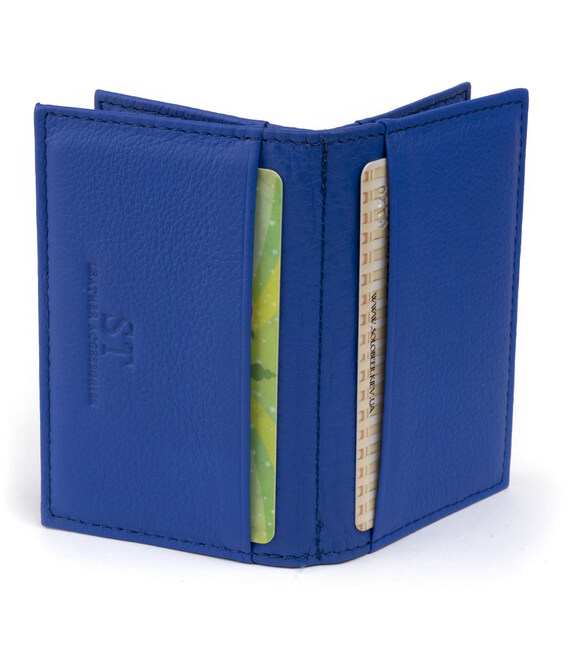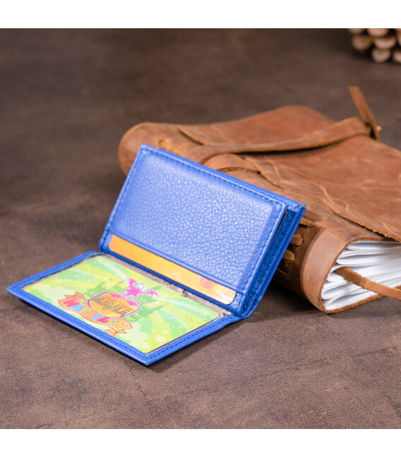 Новинка. Маленька візитниця з натуральної шкіри в яскравому синьому кольорі. Аксесуар має досить слотів для кредиток. Виглядає візитниця у вигляді книжечки. Модель має 6 осередків всередині і 2 осередки зовні для кредиток. З таким аксесуаром ваші картки завжди будуть в одному місці. Модель без застібки. У комплекті йде фірмова упаковка. Візитниця стане прекрасним подарунком для ваших близьких.