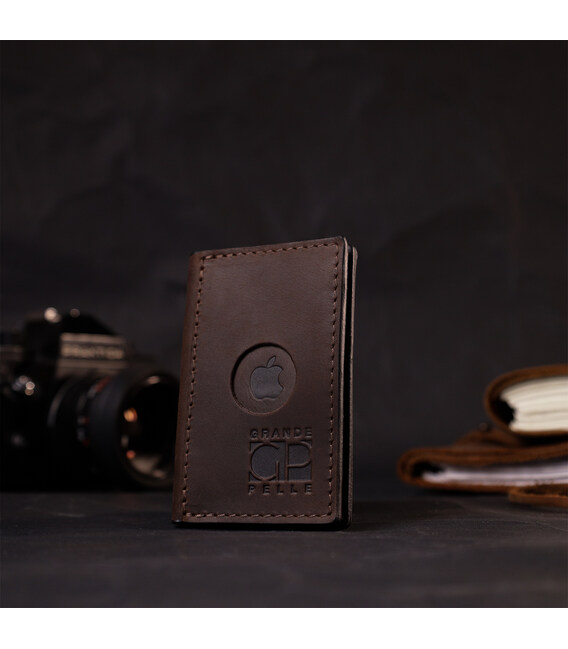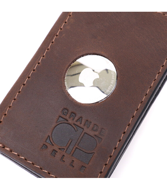 Практичний картхолдер з утримувачем для Apple AirTag з натуральної шкіри GRANDE PELLE 11606 Коричневий