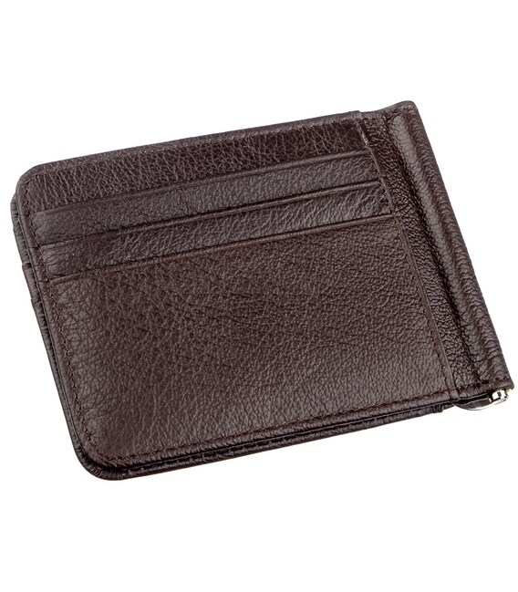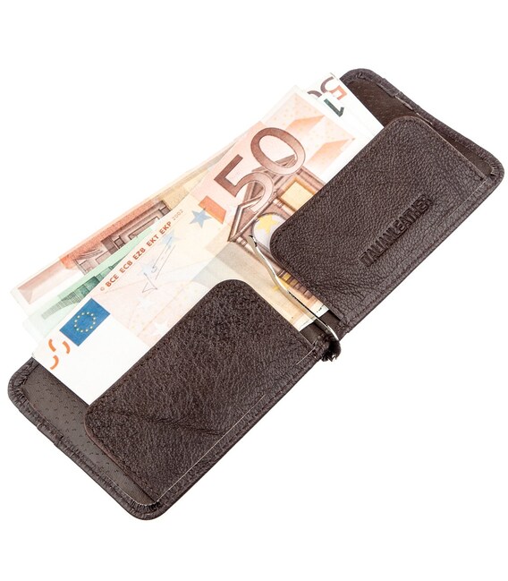 Стильний чоловічий зажим в строгому і практичному дизайні. Стане прекрасним придбанням для тих, кому набридли громіздкі гаманці і тим, у кого є бажання носити з собою мінімум речей. Виконано виріб з відмінної натуральної шкіри з хорошими показниками зносостійкості в процесі експлуатації. Має гарний досить насичений коричневий колір, що надає йому особливого шарму. Якщо незабаром наближається особливе свято, то перед Вами відмінний подарунок справжньому чоловікові. Упакований зажим в картонну фірмову коробку.