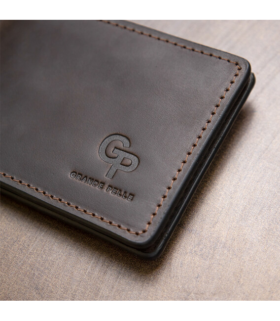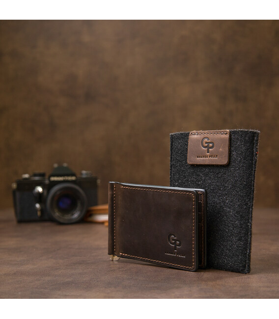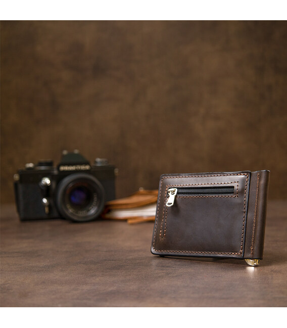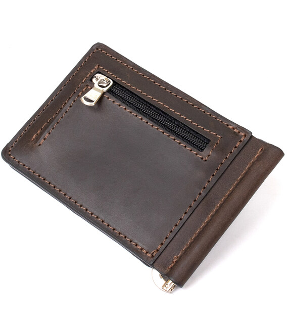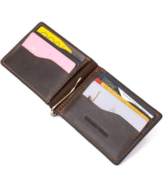 Вінтажний шкіряний затиск для грошей GRANDE PELLE 11473 Коричневий