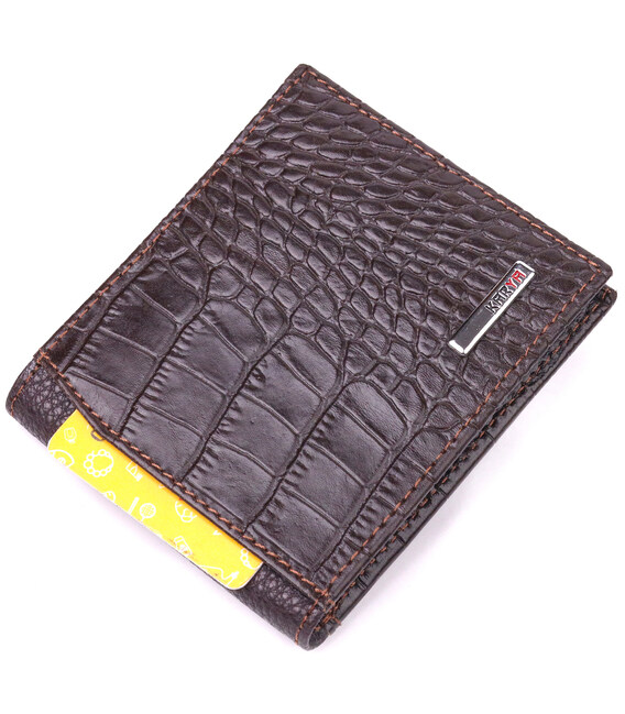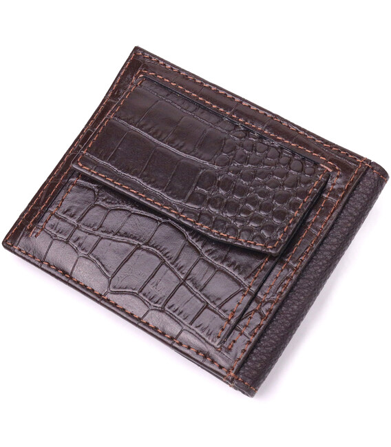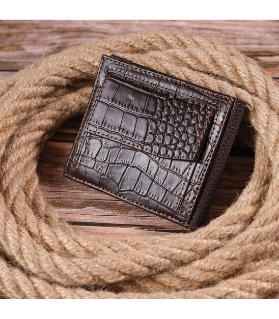 Фактурний чоловічий затиск із монетницею з натуральної шкіри з тисненням під крокодила KARYA 21405 Коричневий