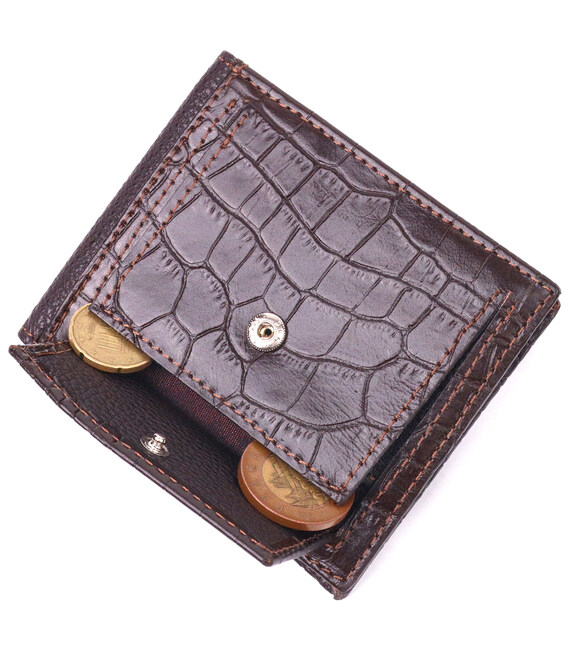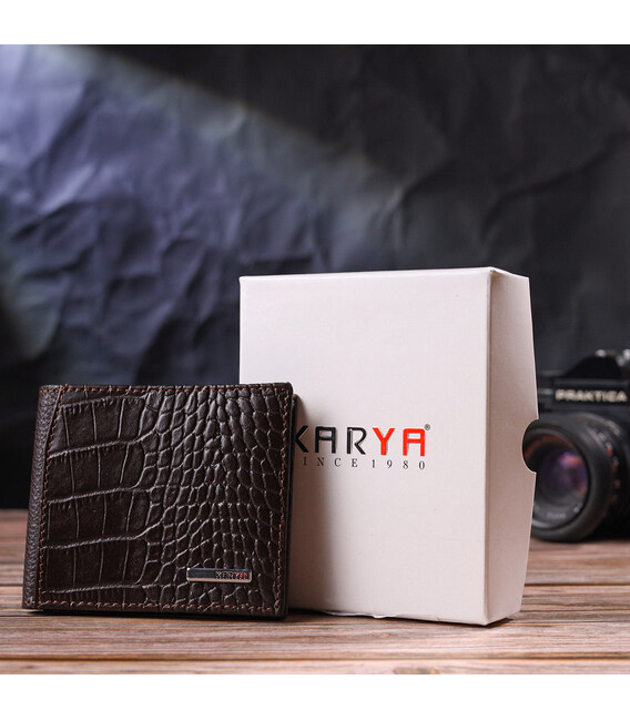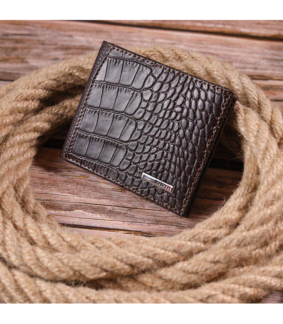 Детальніше Фактурний чоловічий затиск із монетницею з натуральної шкіри з тисненням під крокодила KARYA 21405 Коричневий